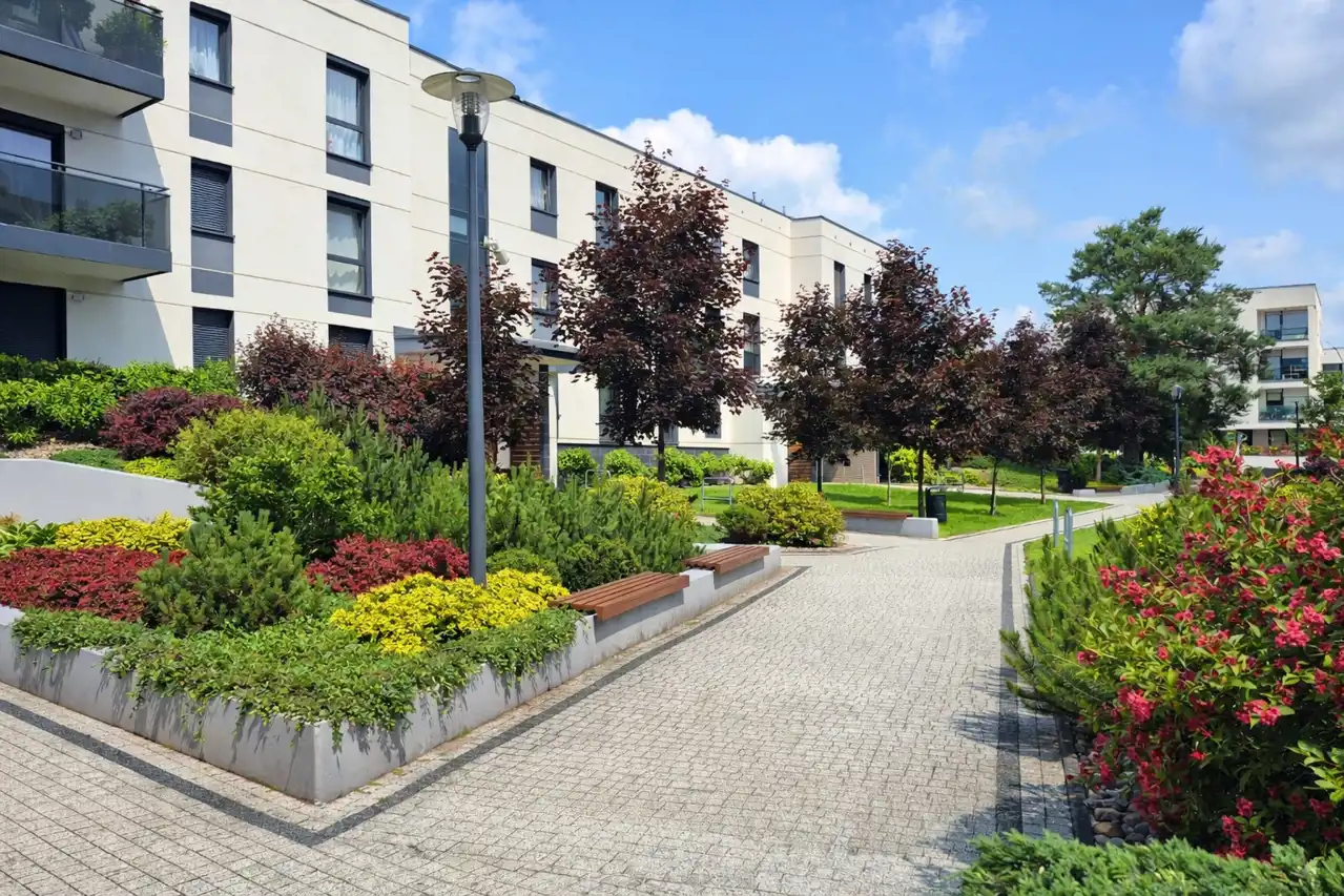 Jest to nowoczesny kompleks budynków mieszkalnych w niskiej zabudowie wielorodzinnej. Biała elewacja złamana antracytem z elementami drewna. Teren wokół został pięknie zagospodarowany, liczne nasadzenia przy alejkach. Deweloper zadbał o każdy element infrastruktury tej inwestycji. W ostatnim czasie w budynku zamontowano panele fotowoltaiczne i stację uzdatniania wody.