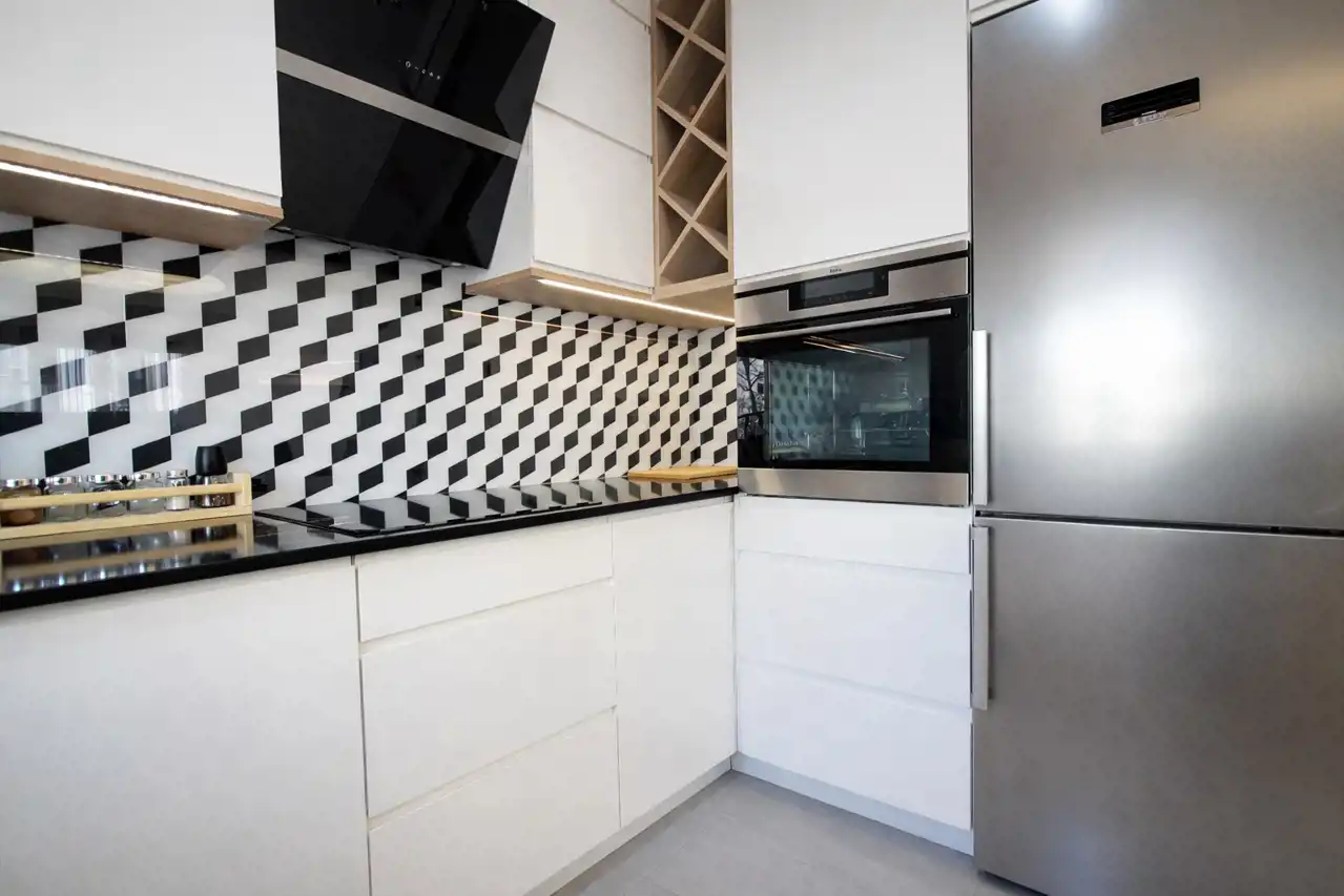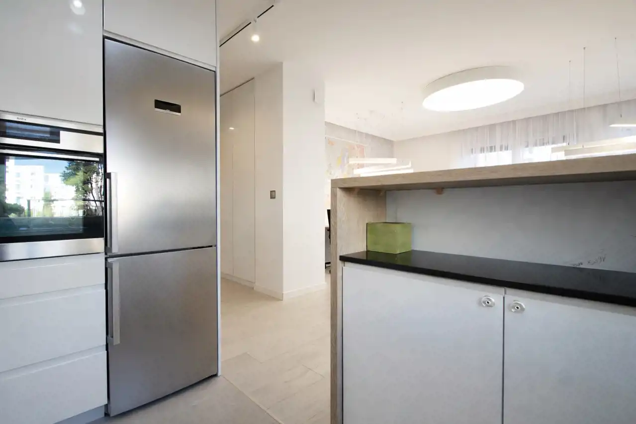 Mieszkanie jest gustownie urządzone, nie wymaga dodatkowego doinwestowania. Pozostaje wyposażone w meble i sprzęt AGD (chłodziarko- zamrażarka, zmywarka, płyta indukcyjna, okap, piekarnik, videodomofon, pralka), czyste, zadbane, na ścianach gładzie i dekoracyjne tapety.