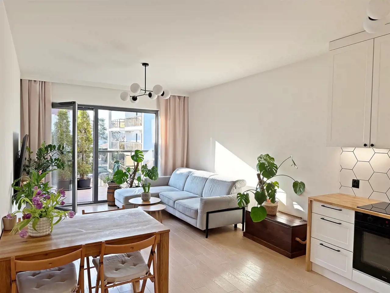 Mieszkanie usytuowane jest na II piętrze w nowoczesnym, dwupiętrowym budynku z windą, oddanym do użytku w 2021 roku. Osiedle jest zamknięte i monitorowane – gwarancja prywatności i spokoju
