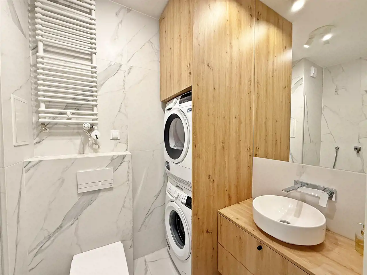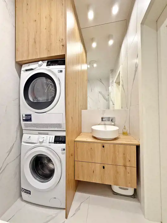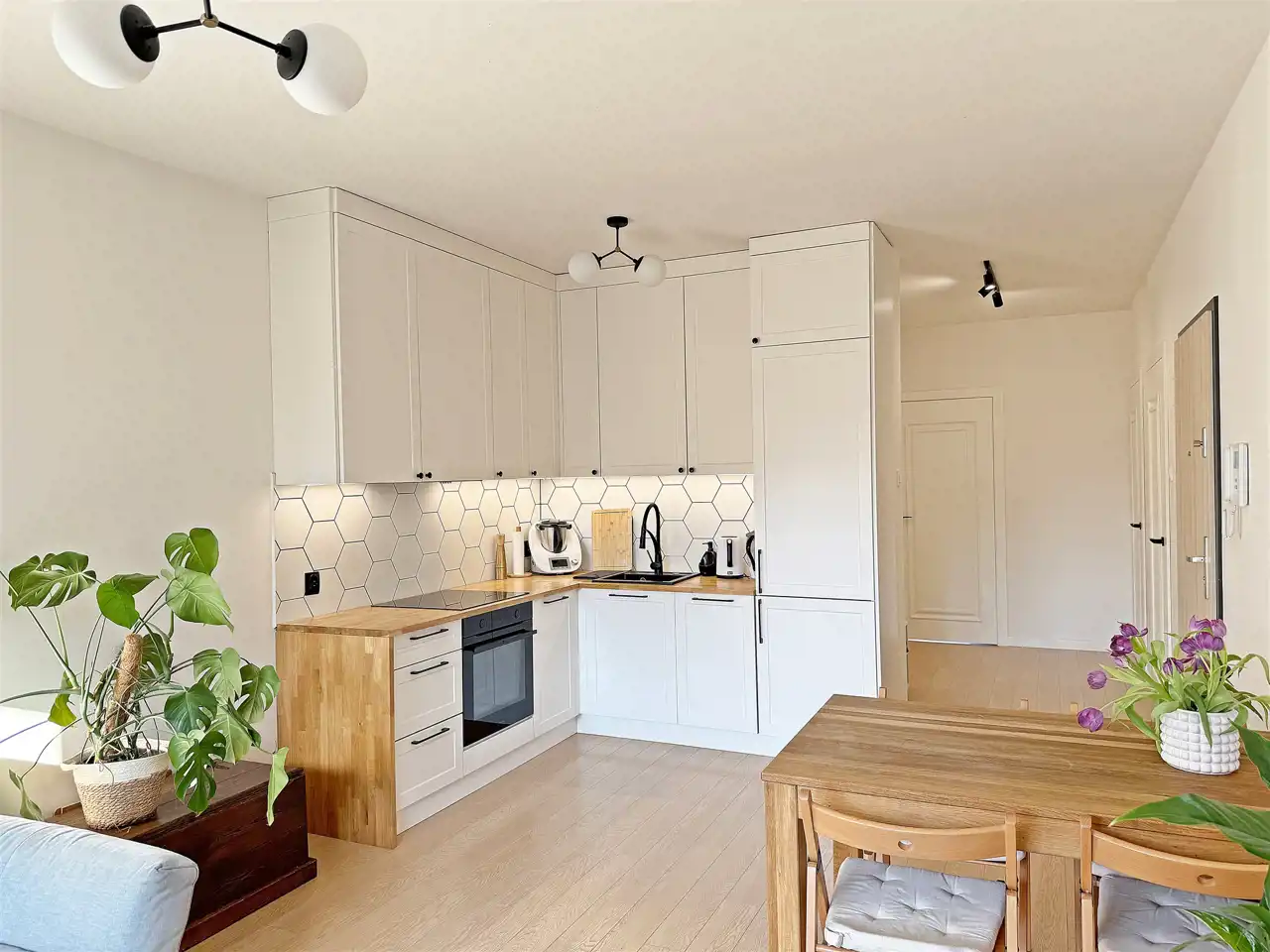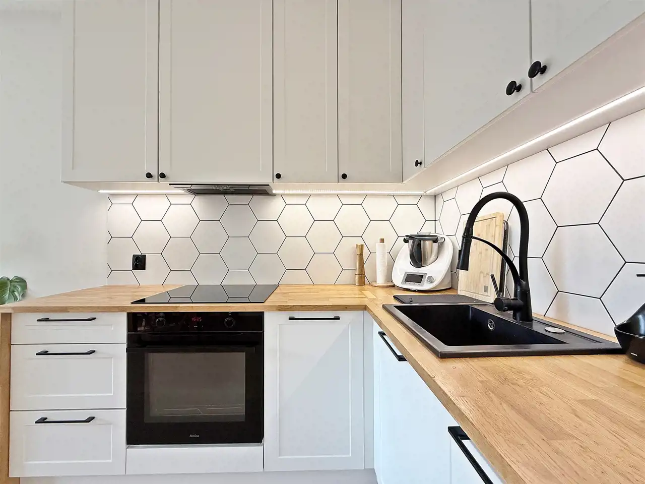 – nowoczesna zabudowa kuchenna z pełnym AGD