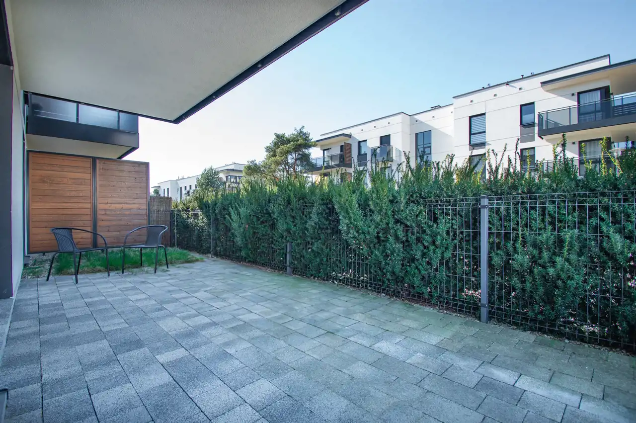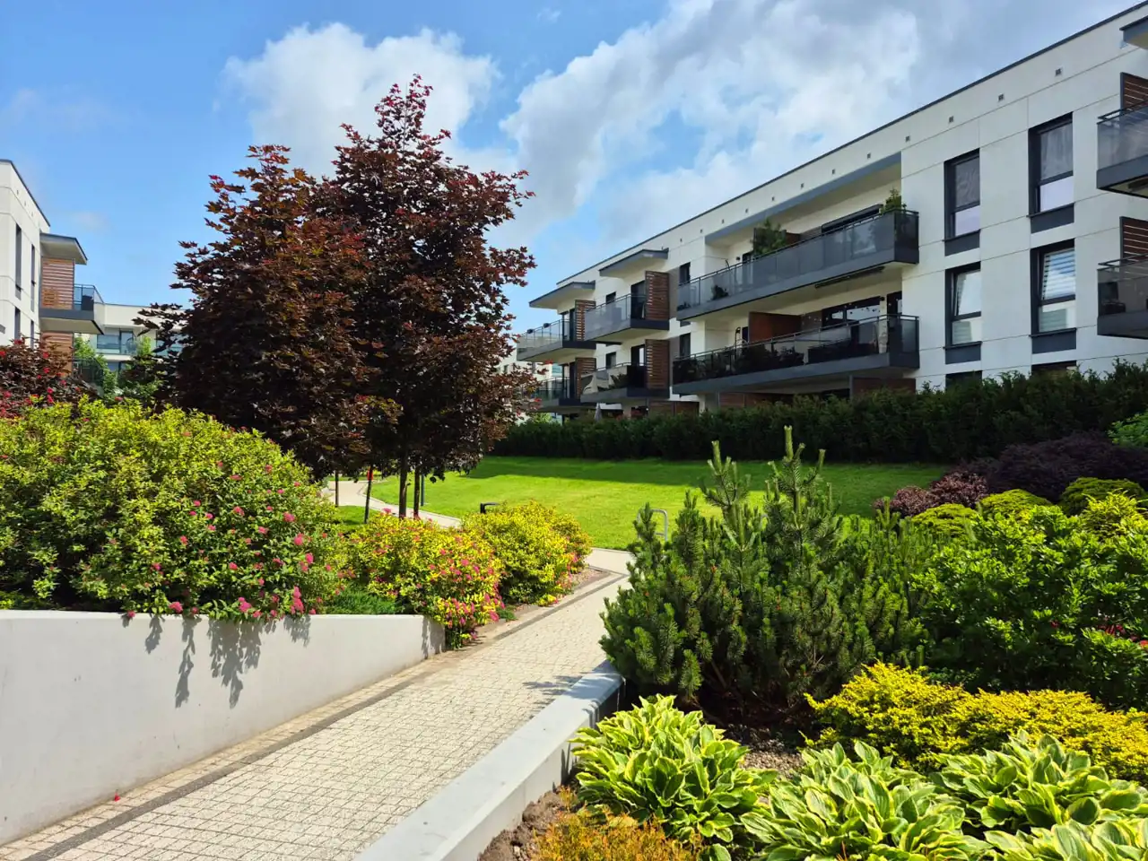 Jest to nowoczesny kompleks budynków mieszkalnych w niskiej zabudowie wielorodzinnej. Biała elewacja złamana antracytem z elementami drewna. Teren wokół został pięknie zagospodarowany, liczne nasadzenia przy alejkach. Deweloper zadbał o każdy element infrastruktury tej inwestycji.