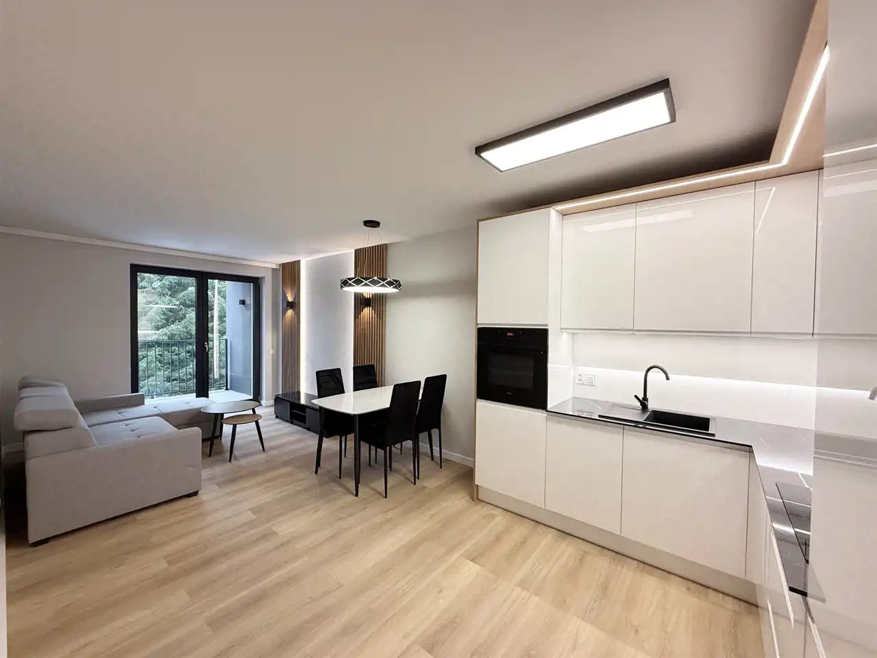 – salonu z aneksem kuchennym 20,64 m² i wyjściem na duży balkon