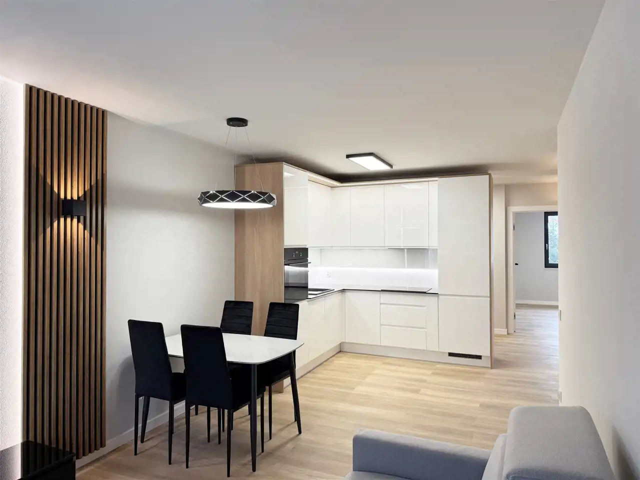 Mieszkanie znajduje się na II piętrze w kameralnym budynku, w którym znajdują się tylko 3 lokale na jedną klatkę – poczucie przestrzeni i prywatności gwarantowane.