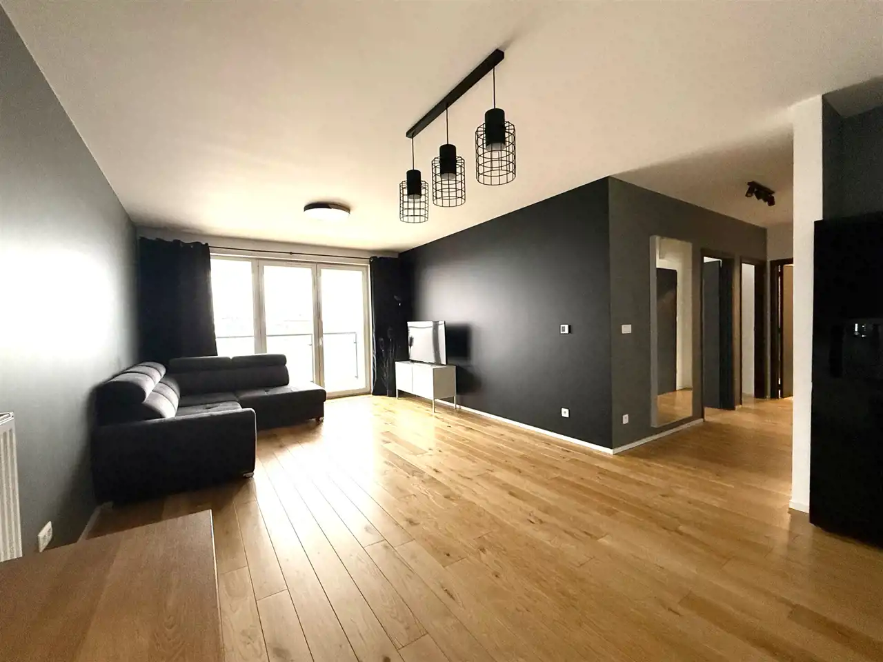 Na wszystkich ścianach gładzie, na podłogach wysokiej klasy ścieralności panele, nowoczesne oświetlenie. Aneks kuchenny zabudowany i wyposażony w piękną lodówkę, zmywarkę, okap i inne wyposażenie. W łazience kafelki na podłodze i ścianach, wyposażonej w kabinę, zabudowaną umywalkę z dużym, podświetlanym lustrem. W salonie duży stół wraz z krzesłami, TV, skórzana kanapa, fotel oraz szafka pod RTV. W sypialni rozkładana kanapa oraz zabudowana szafa. W drugiej sypialni garderoba oraz duże łóżko wraz z materacem oraz nową pościelą. Przedpokój wyposażony w siedzisko oraz podręczny zakątek na odzież wierzchnią. Z przedpokoju wejście do pomieszczenia na podręczne przedmioty, typu odkurzacz i środki czystości oraz pralnia wyposażona w podłączoną do sieci i instalacji, gotową do użytkowania pralkę automatyczną. W salonie w podłodze, przy drzwiach wyjściowych na taras znajduje się dodatkowe ogrzewanie, podpięte pod ogrzewanie CO, z dodatkowym sterowaniem elektronicznym. Wysokiej jakości drzwi wewnętrzne oraz doskonałe oświetlenia i podświetlenia we wszystkich pomieszczeniach. W całym mieszkaniu panele drewniane. Okna wyposażone w ładne rolety wewnętrzne.