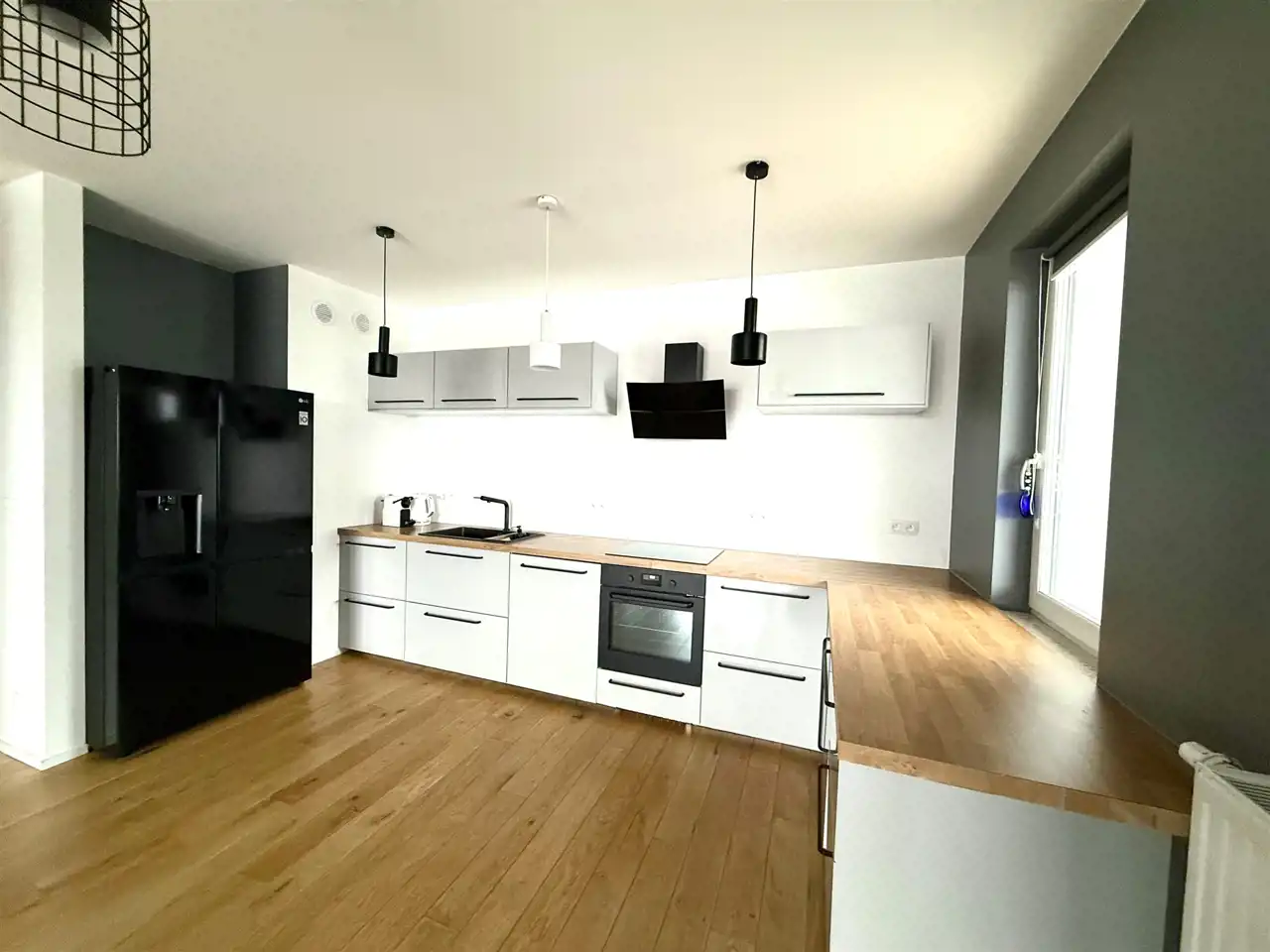 Apartament wykończony bardzo dobrej jakości materiałami, umeblowany i wyposażony bez jakichkolwiek oznak użytkowania.