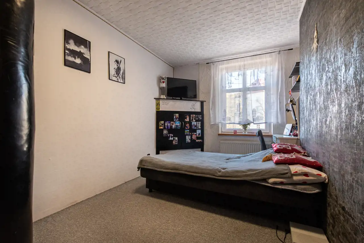 Mieszkanie jest dwupoziomowe i składa się z 3 pokoi, kuchni, łazienki z wc, wiatrołapu, schowka; który w tym momencie pełni funkcję pralni.