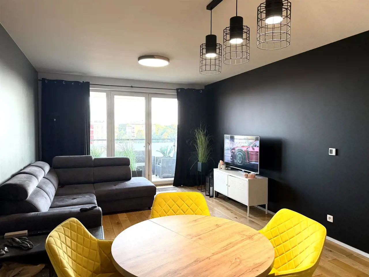 Apartament wykończony bardzo dobrej jakości materiałami, umeblowany i wyposażony bez jakichkolwiek oznak użytkowania.