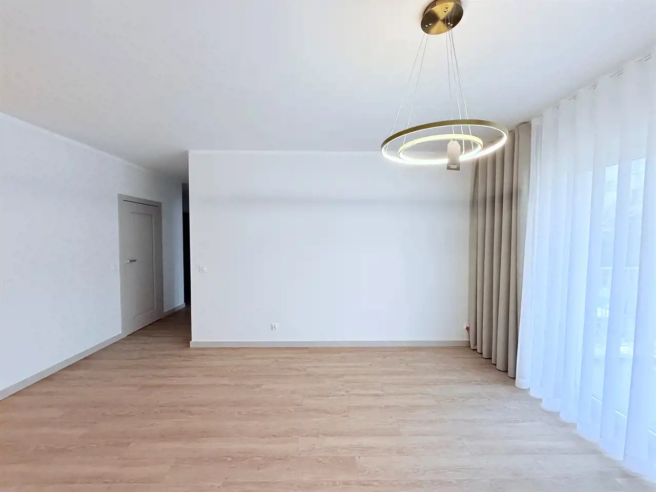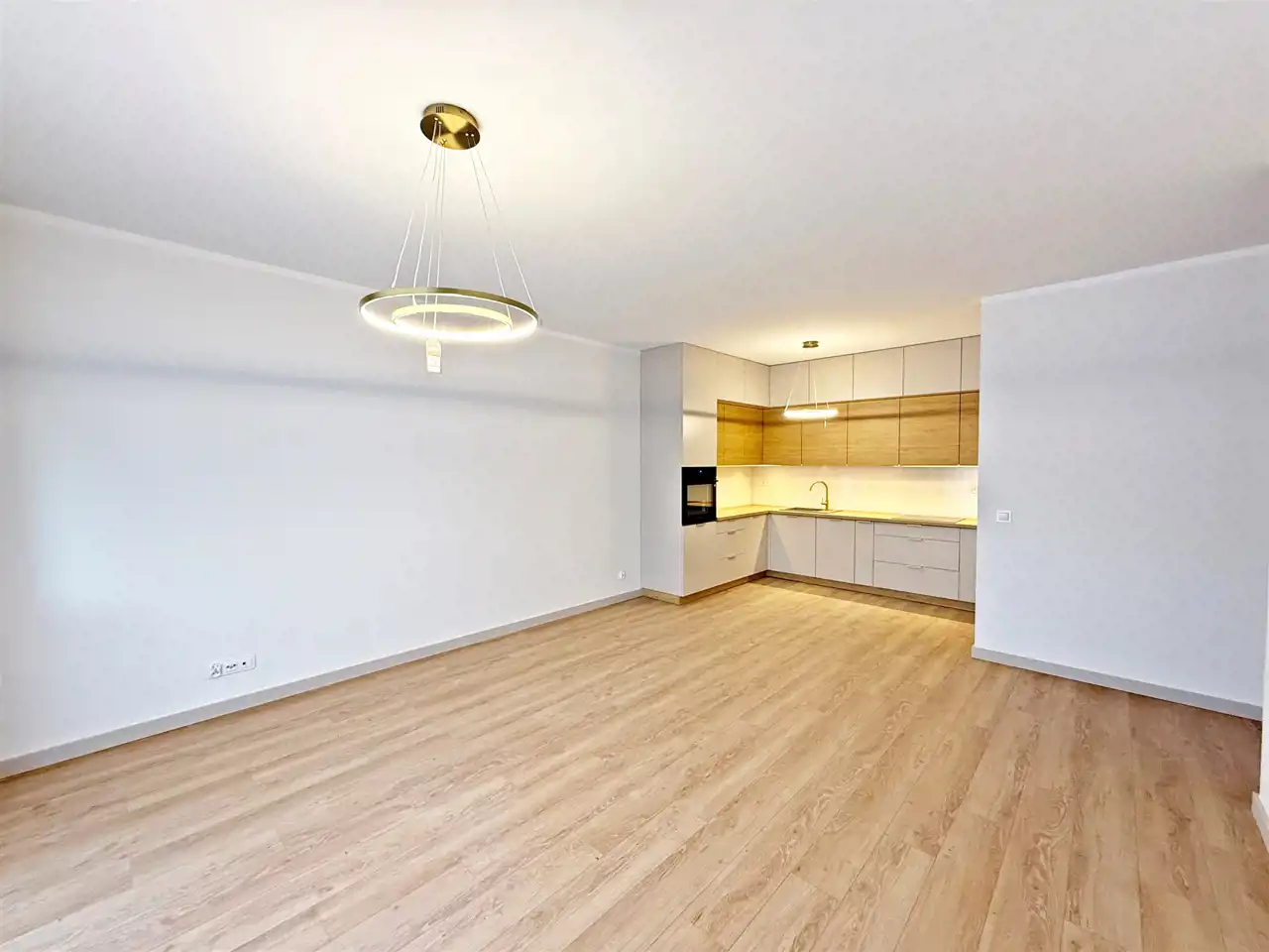 – przestronnego salonu z aneksem kuchennym i wyjściem na balkon