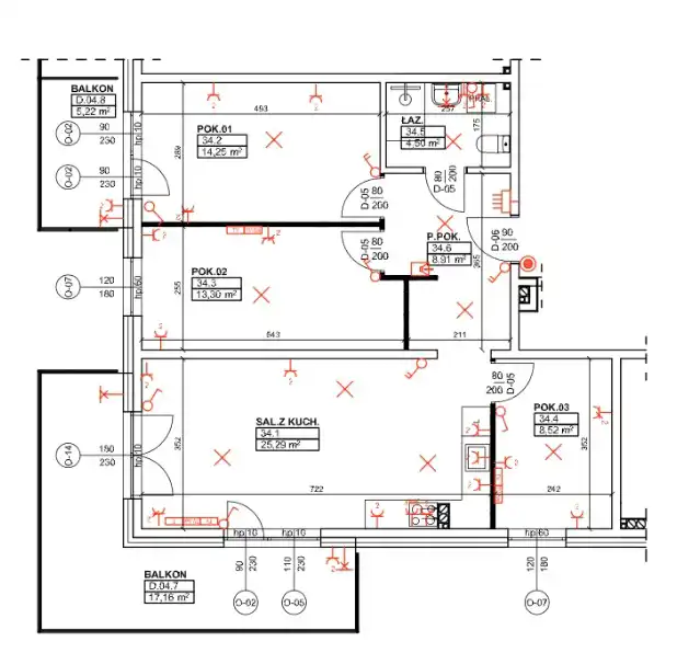 – 2 balkony o łącznej powierzchni 22,38 m²