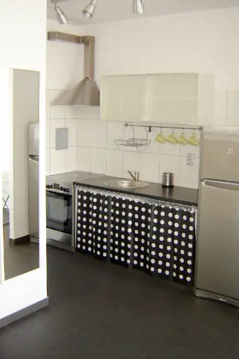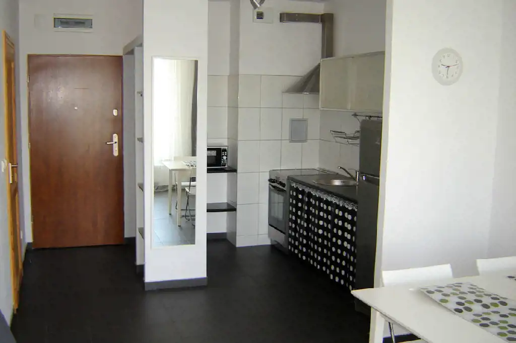 Kuchnia w pełni wyposażona: kuchnia (Mastercook), lodówka (Indesit), kuchenka mikrofalowa i okap.