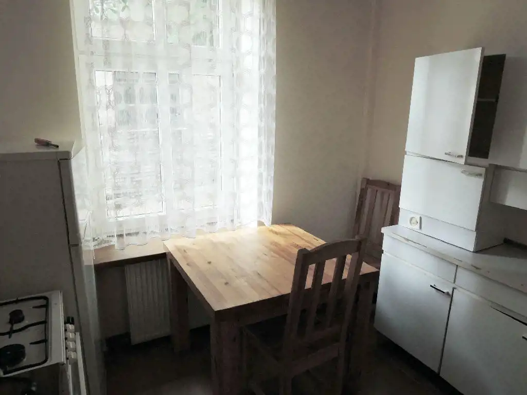 Mieszkanie po remoncie w zadbanej kamienicy. Standard wykończenia: na podłogach w łazience i kuchni kafle, w pokojach panele. Mieszkanie umeblowane. W kuchni kuchenka gazowa z piekarnikiem, duża lodówka; w łazience pralka. Nowe okna PCV. Ogrzewanie gazowe piecem dwufunkcyjnym.