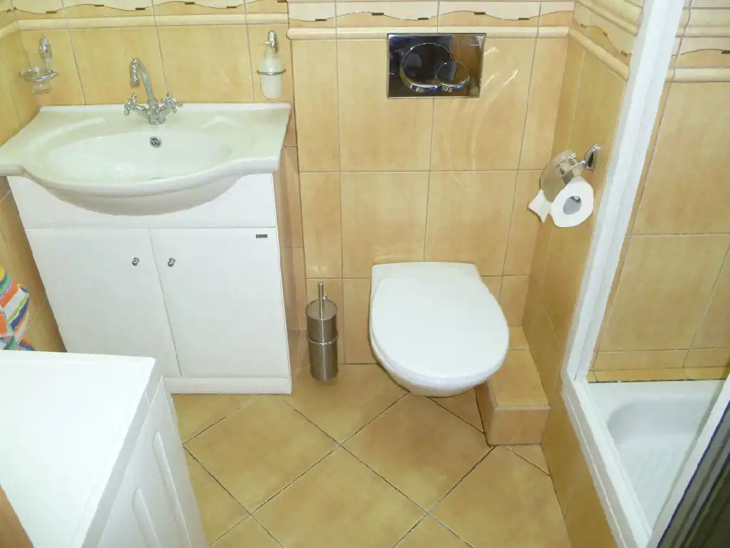 - łazienka razem z wc wyposażona w kabinę prysznicową,