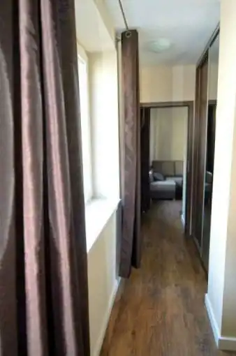 Lokal składa się z pokoju dziennego połączonego z aneksem kuchennym, sypialni, łazienki z wc oraz przedpokoju. Mieszkanie jest komfortowo wykończone i wyposażone w podstawowe sprzęty. W salonie znajduje się kanapa, stół i krzesła oraz szafki. W sypialni duże łóżko i półki. W przedpokoju duża szafa typu Komandor z lustrem. Aneks kuchenny wyposażony jest w sprzęty AGD, kuchenka, lodówka, zmywarka. W łazience prysznic i pralka. Łazienka razem z wc.