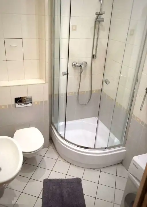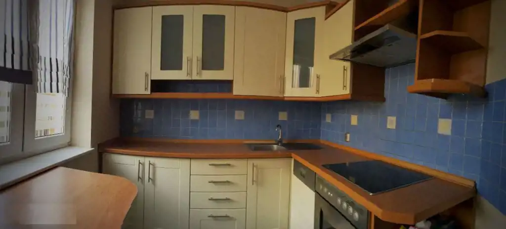 Mieszkanie cechuje się bardzo dobrym standardem wykończenia. Zostało odremontowane. Na podłodze położone są panele, na ścianach gładzie. Osobna kuchnia w glazurze i terakocie. Łazienka również w glazurze i terakocie - z kabiną prysznicową.