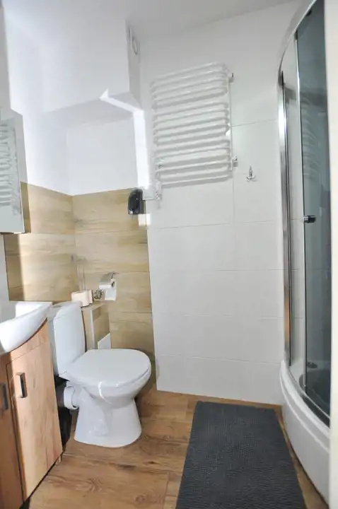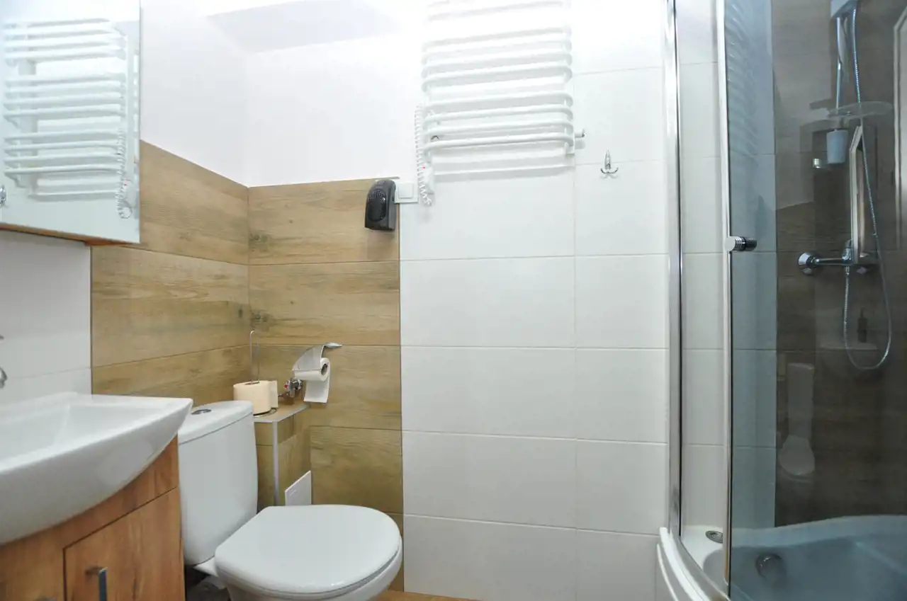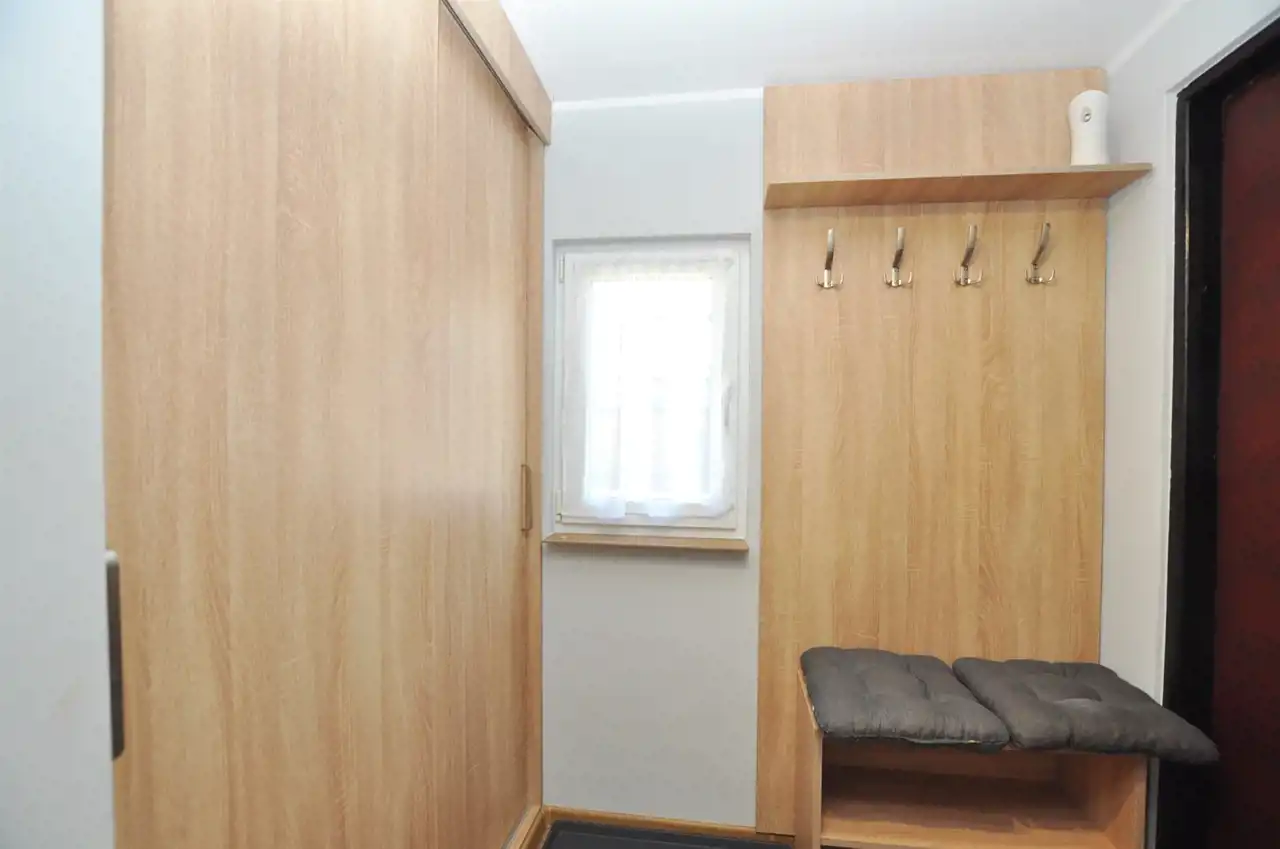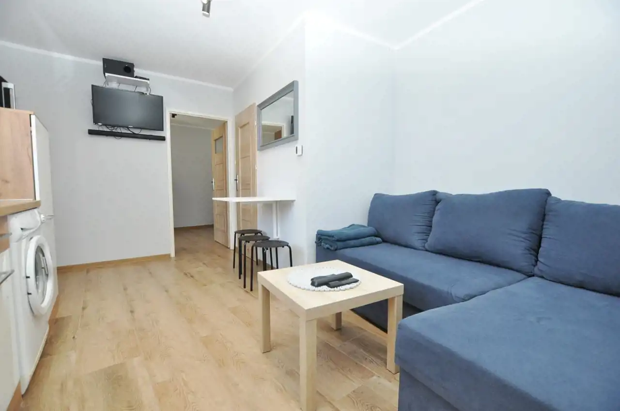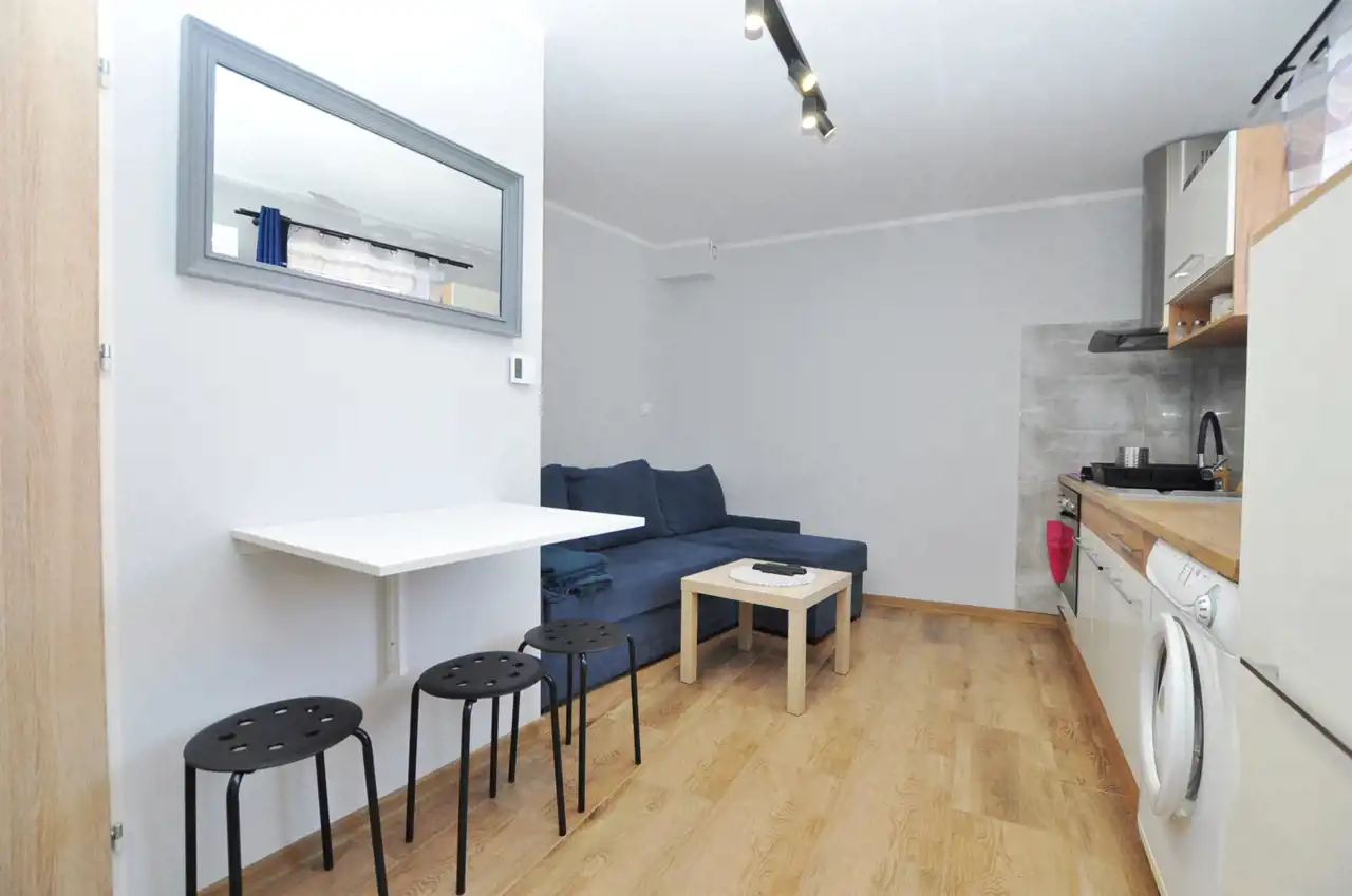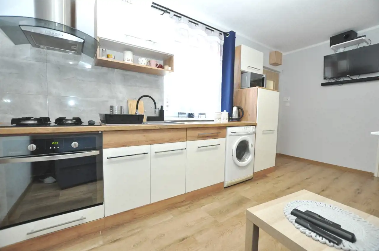 Na powierzchnię 29 m2 składa się pokój z aneksem kuchennym, sypialnia, łazienka z WC oraz przedsionek. W wyposażeniu m.in. pralka,suszarka, mikrofalówka, duża lodówka z zamrażarką.