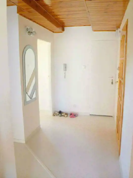 Mieszkanie jest bardzo eleganckie, w świetnym stanie. Niedawno przeprowadzony został remont. W pokojach na podłodze położono panele dębowe lakierowane na biało, na ścianach gładzie. W kuchni i przedpokoju terakota, również w kolorze bieli. Sufit pokryty drewnem tworzy w mieszkaniu niepowtarzalny klimat.