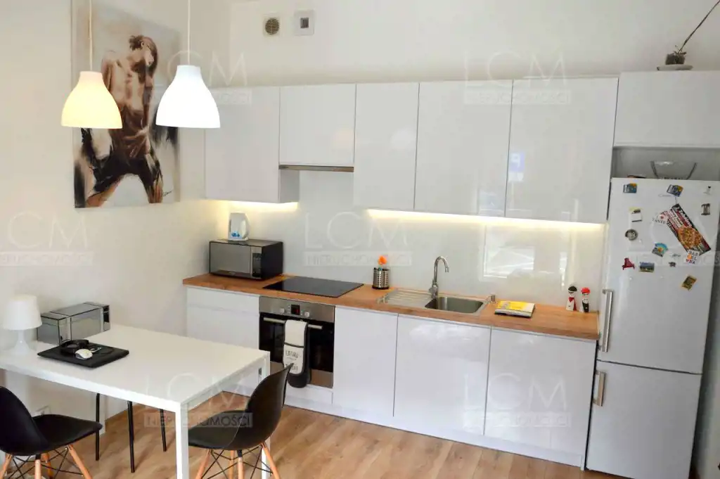 Mieszkanie jest całkowicie umeblowane i wyposażone (meble widoczne na zdjęciach).