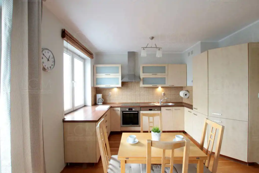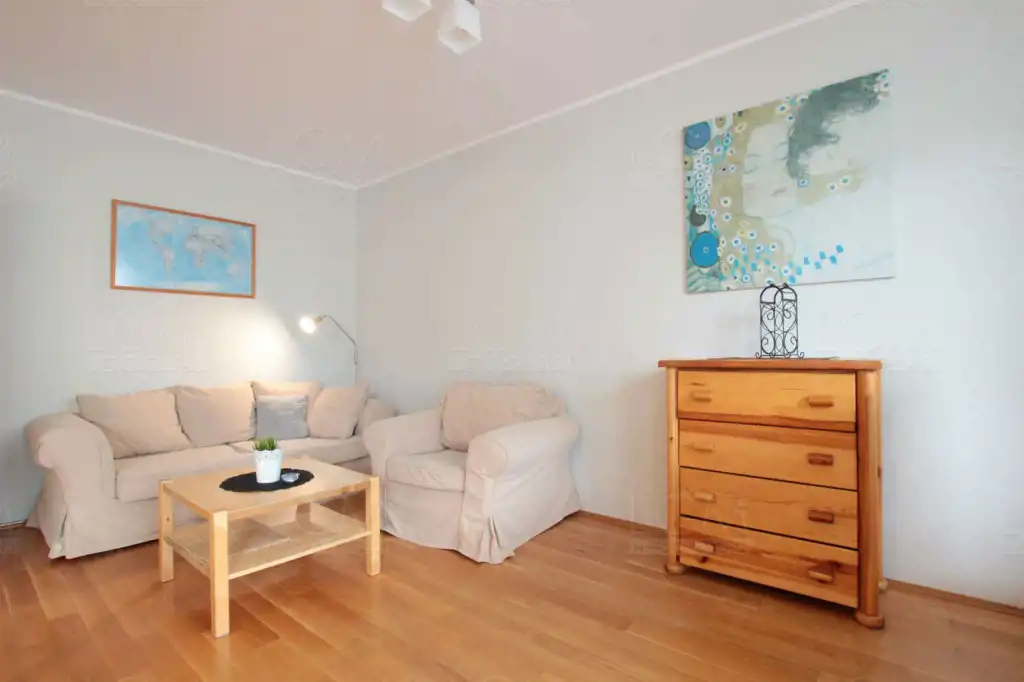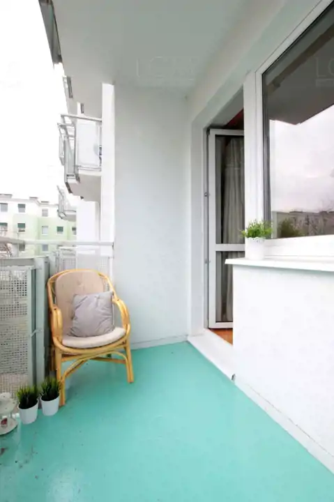 Lokal jest umeblowany we wszystkie niezbędne meble oraz sprzęty. W kuchni znajduje się zabudowa a w niej: lodówka, płyta grzewcza, piekarnik, zmywarka, stół oraz krzesła. Salon wyposażony w zestaw wypoczynkowy, TV i wszystko co widoczne jest na zdjęciach. W łazience pralka. W sypialni łóżko, szafa oraz kolejna zabudowana szafa.