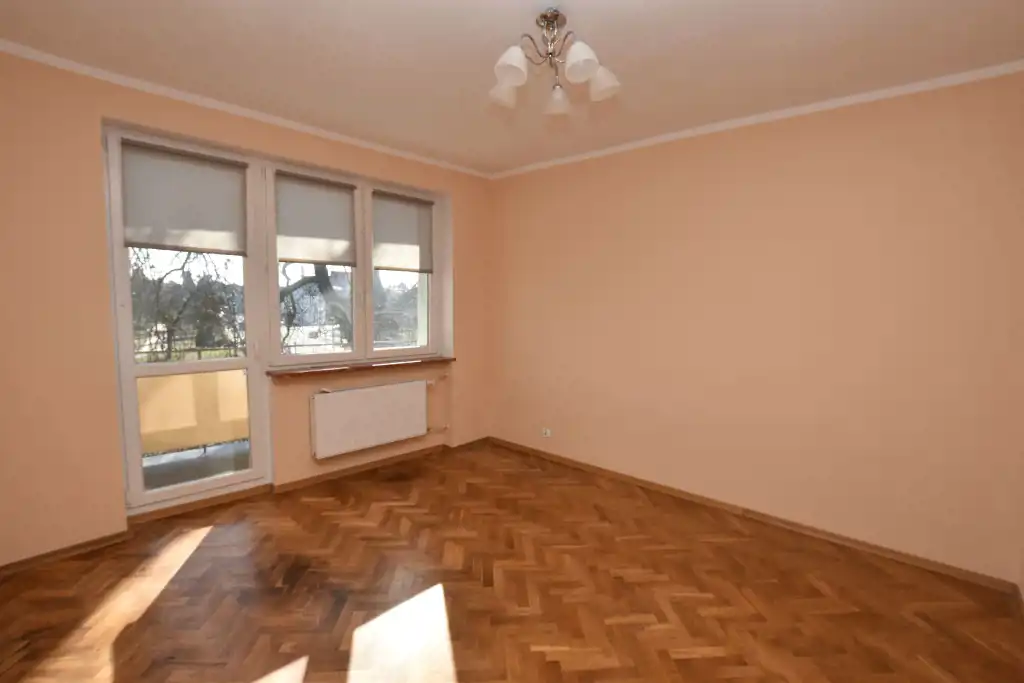 Mieszkanie gotowe do wprowadzenia. Na ścianach gładzie, podłoga - kafle oraz parkiet, okna PCV, roletki w oknach.