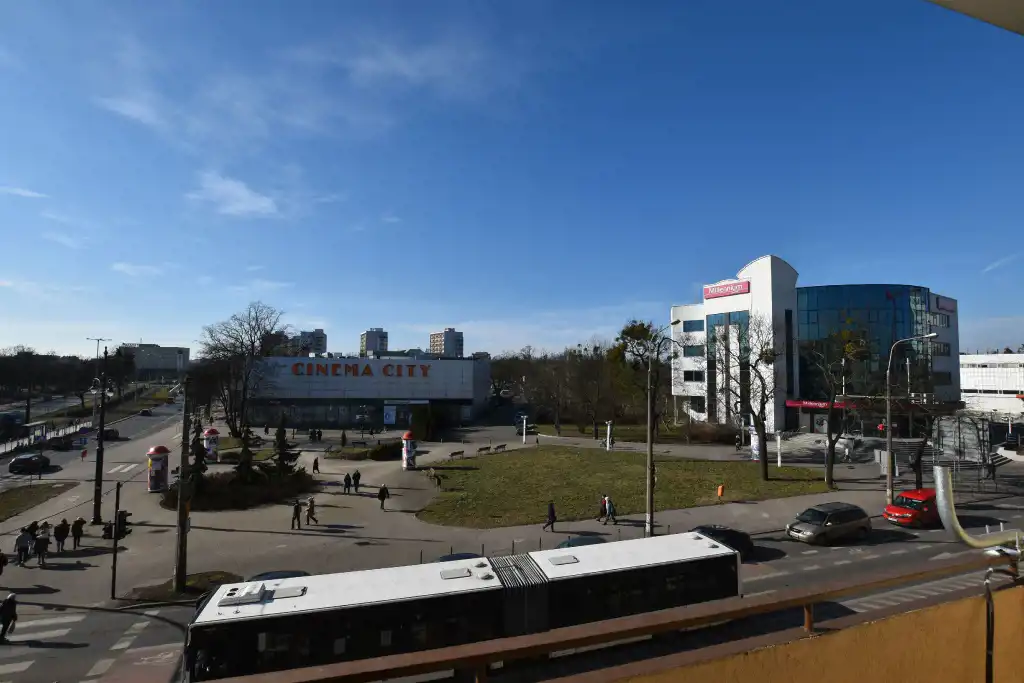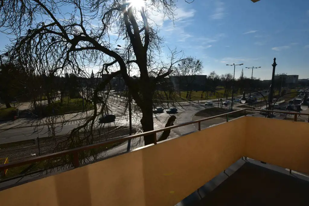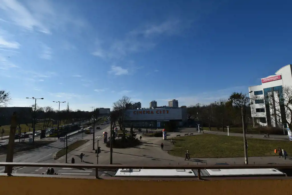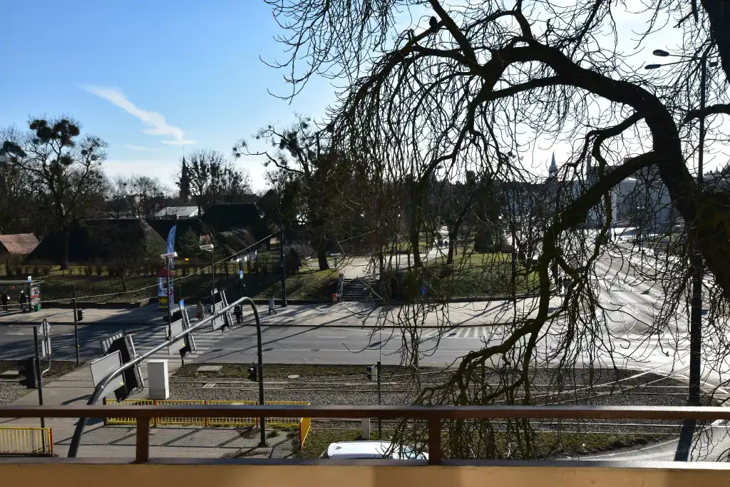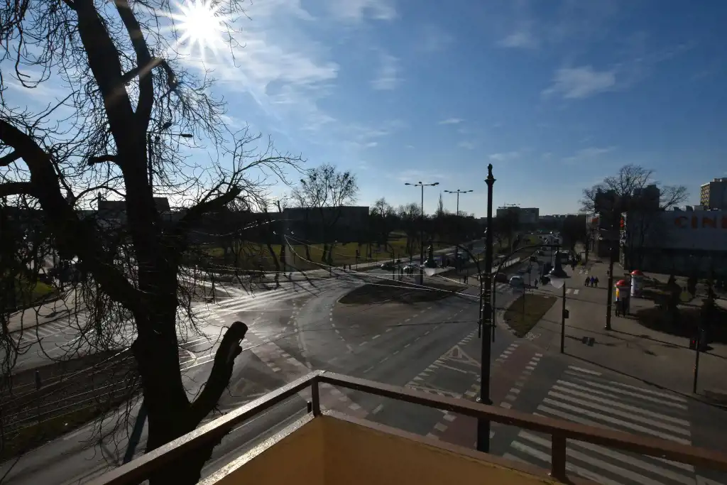 Z dwóch pokoi wyjście na dwa osobne balkony. Z okien ładne widoki na panorame miasta - tu nie zaglądają w okna sąsiedzi.
