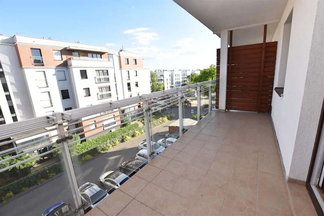 Z salonu wyjście na przestronny balkon (12m2). Okna oraz taras wychodzą na środek osiedla - z dala od zgiełku ulicznego - okna NIE WYCHODZĄ na ulicę tylko na środek osiedla !!
