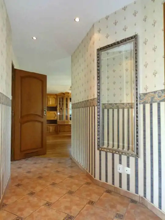 W kuchni i w przedpokoju na podłogach położone są wysokiej jakości płytki płytki podłogowe, w pokojach panele.