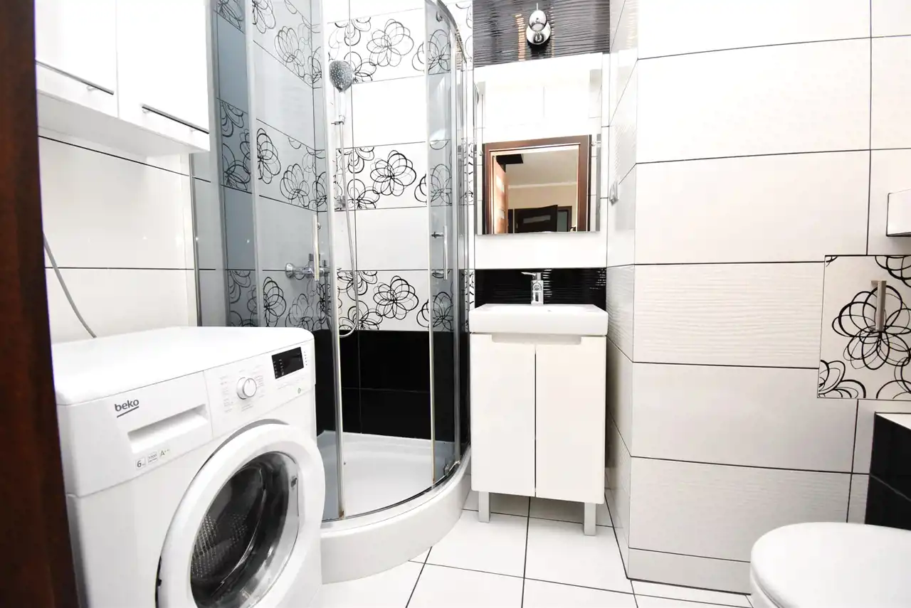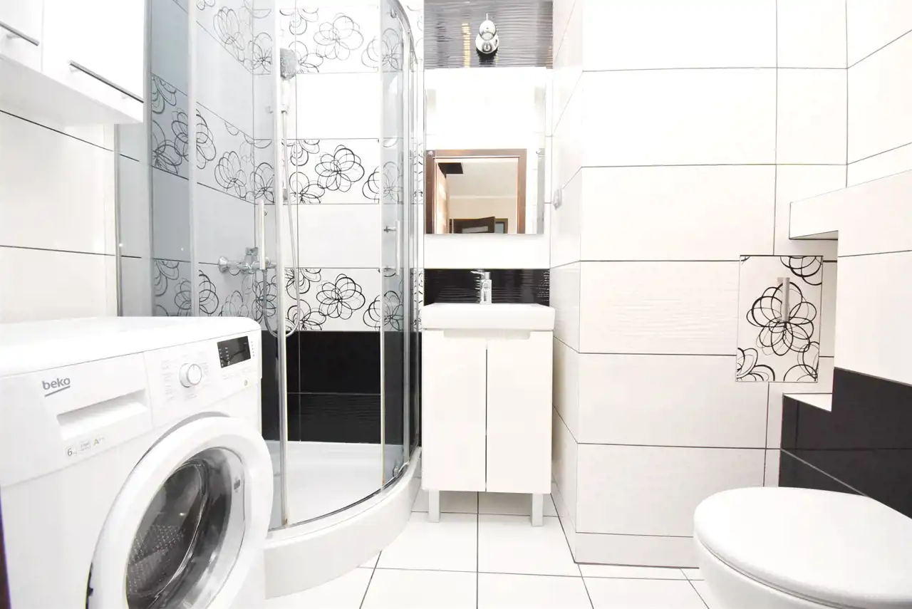 - w wyposażeniu m.in pralka, duża lodówka z zamrażarką, TV