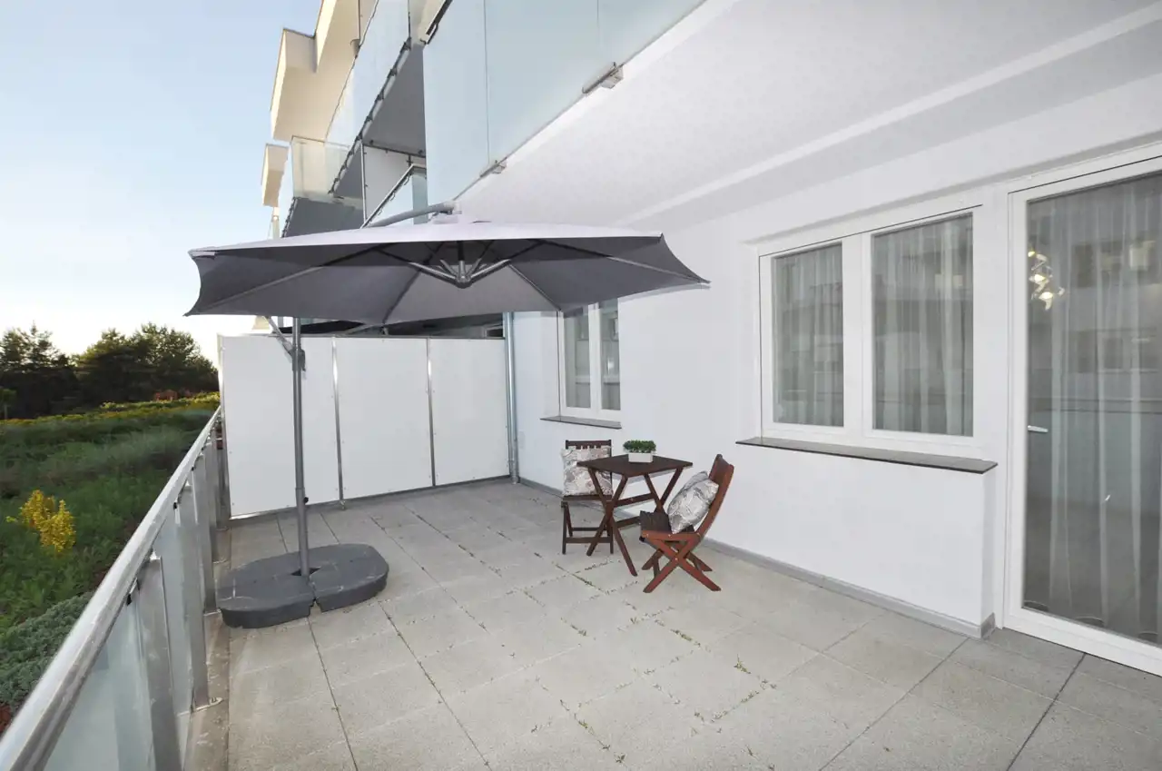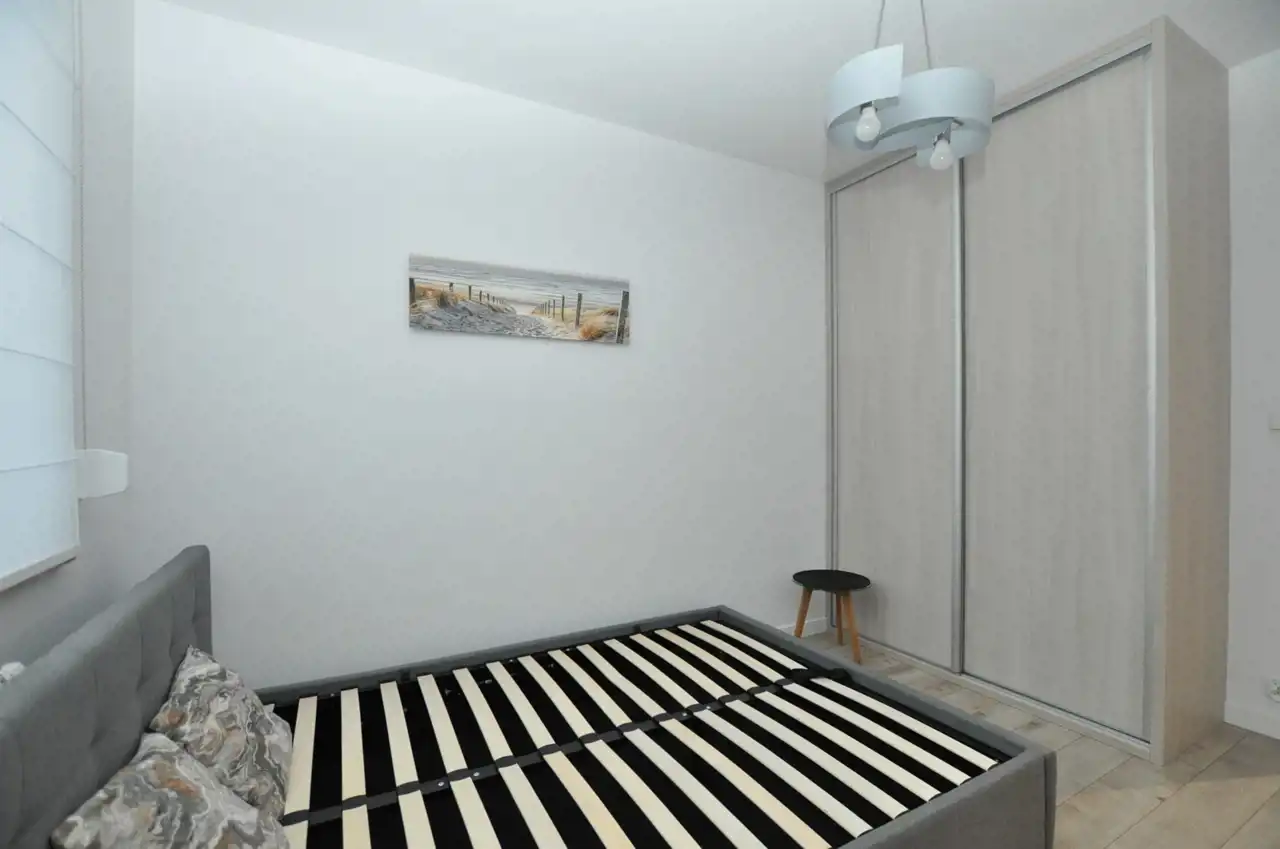 - salon z aneksem kuchennym i wyjściem na taras - sypialnia - łóżko sypialniane rozkładane, szafa w zabudowie