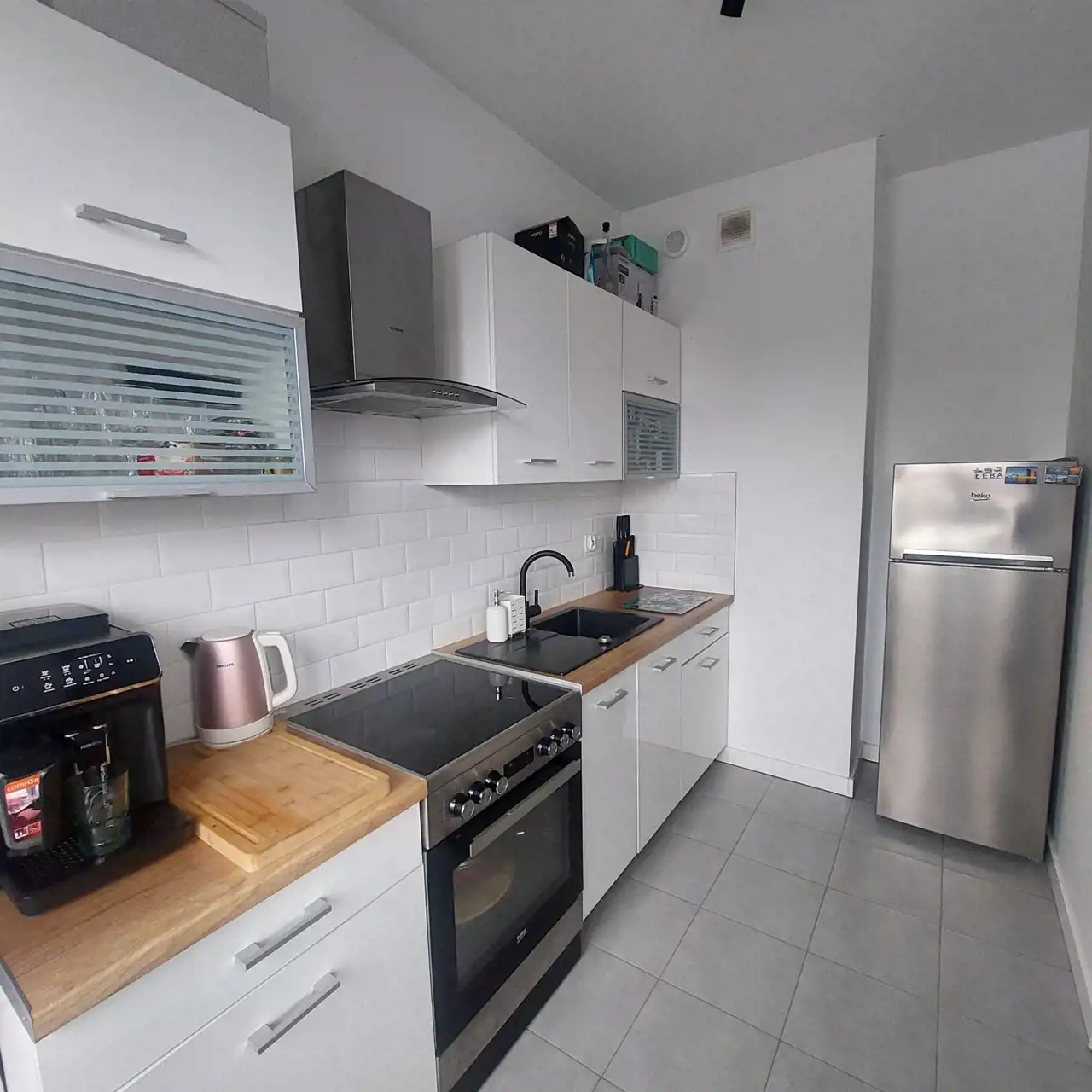 Umeblowana, wyposażona w lodówkę, piekarnik, płytę grzewczą i pralkę, gotowa do zamieszkania.