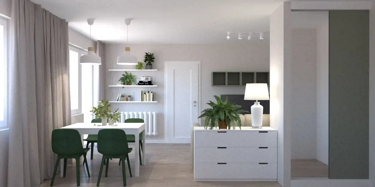 Mieszkanie utrzymane w jasnej kolorystyce nadające ciepłej i przytulnej atmosfery domowego zacisza.