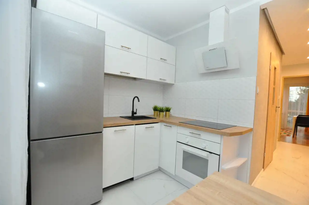 - kuchnia z dużą lodówką i zamrażarką, zmywarka