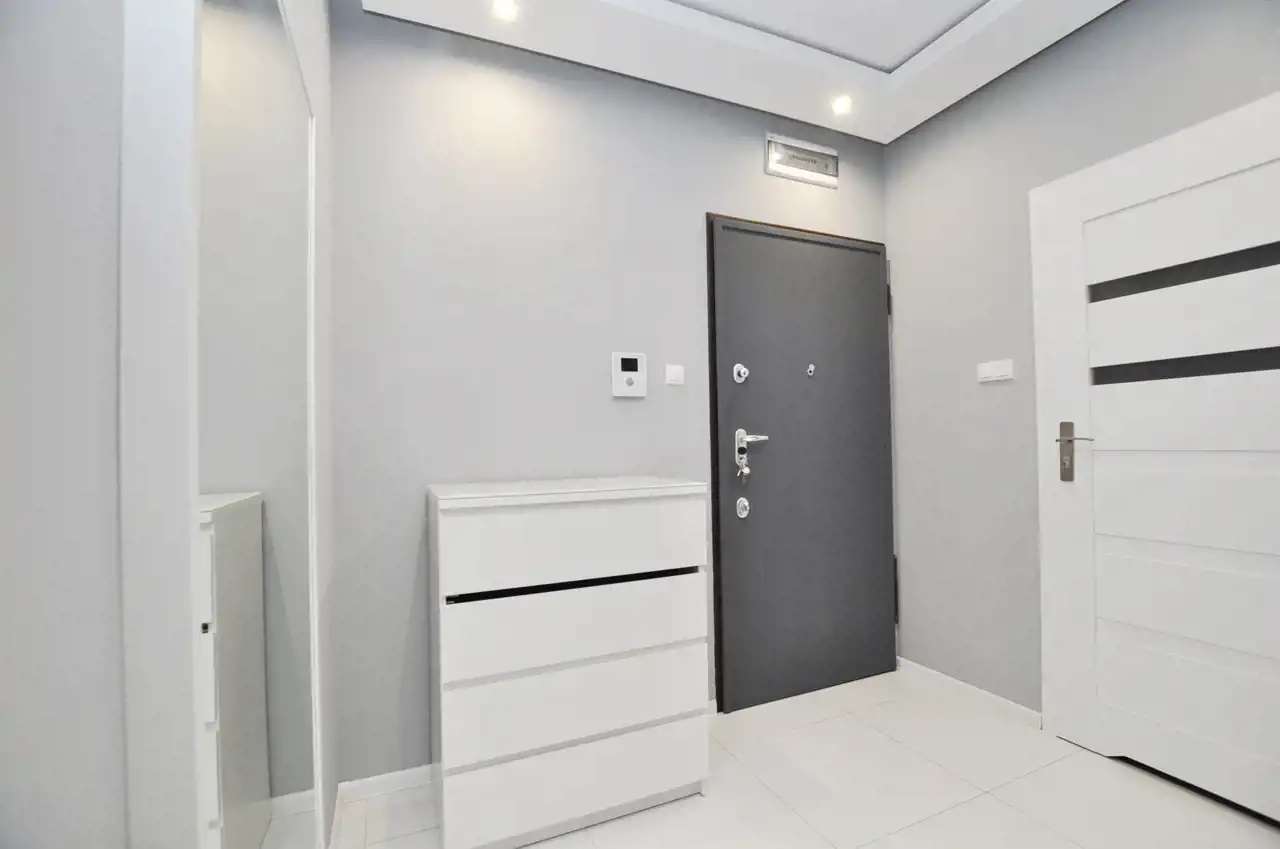 Na powierzchnię ok.49 m2 składa się salon z aneksem kuchennym, sypialnia, garderoba, łazienka z WC oraz przedpokój.