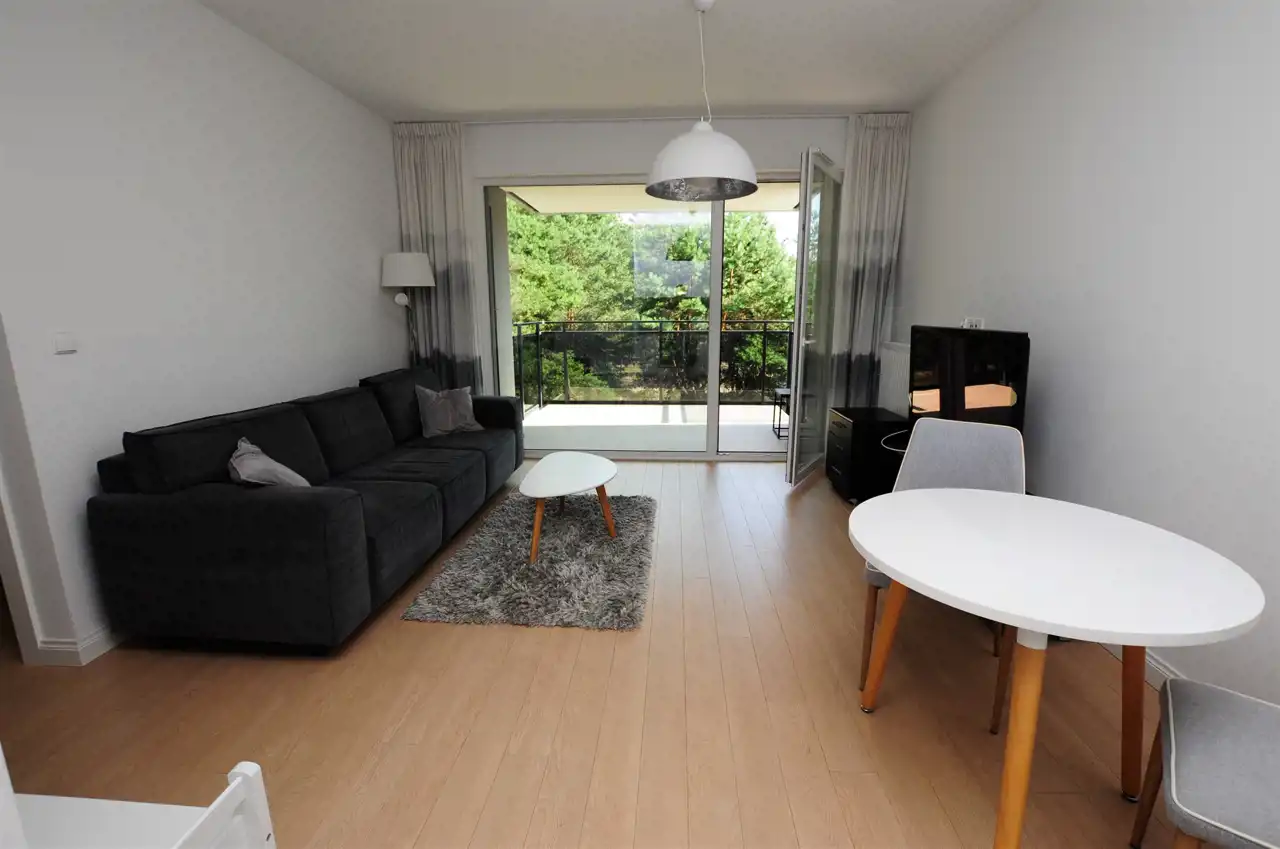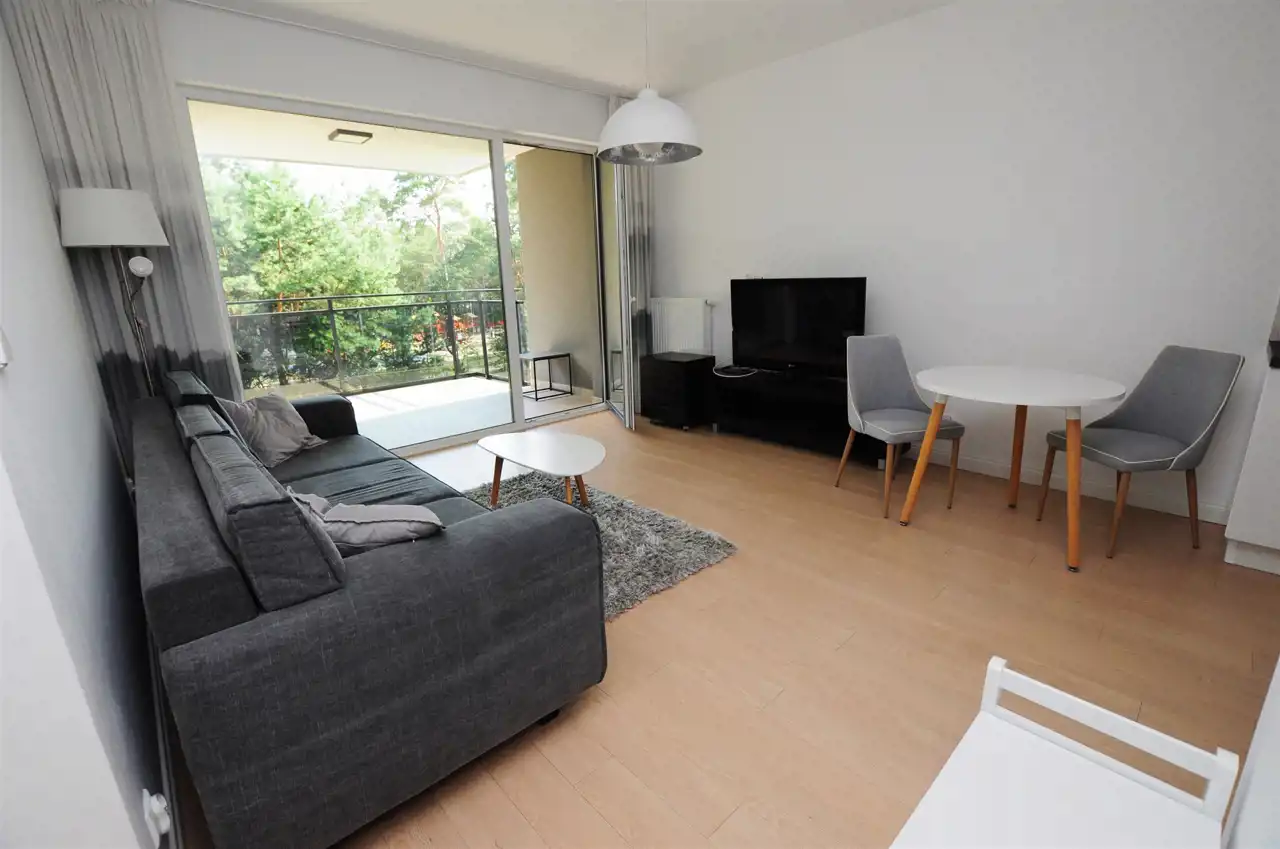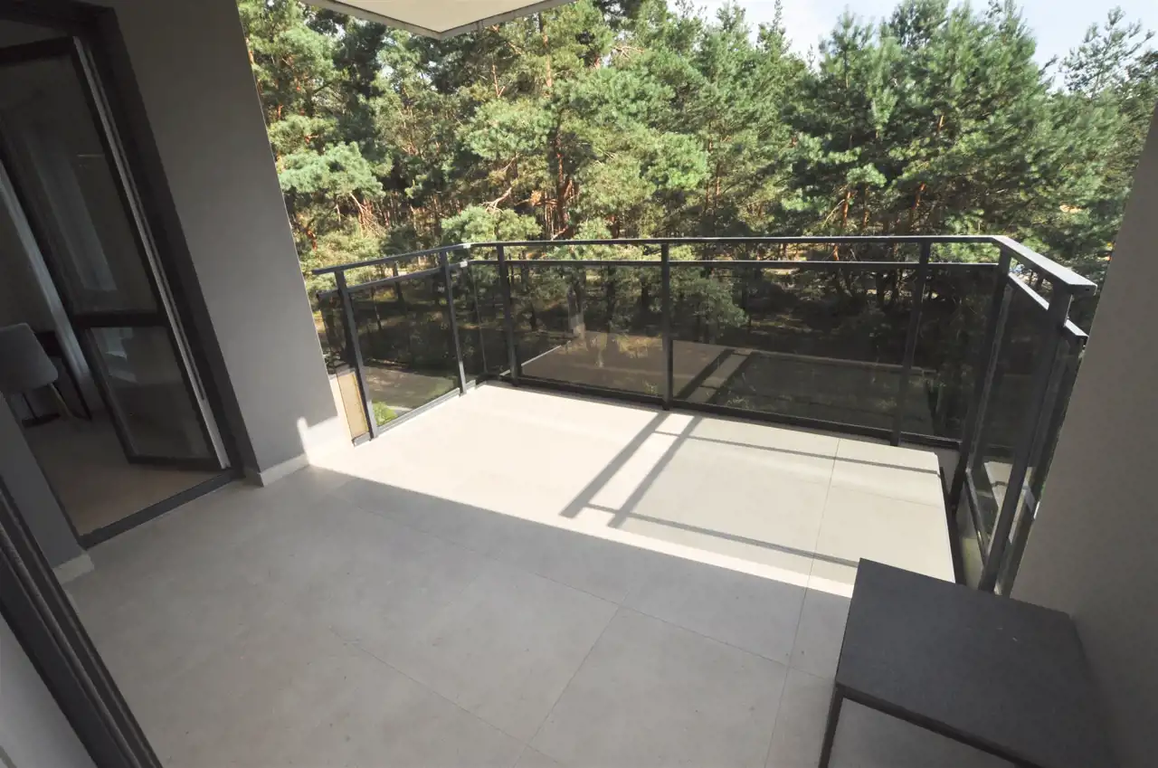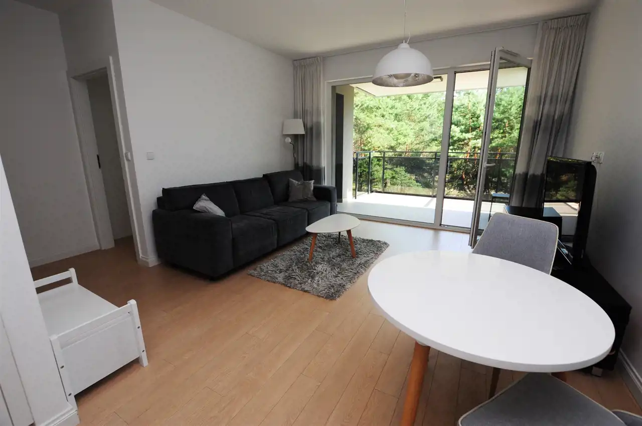 - salon połączony z aneksem kuchennym z wyjściem na duży balkon, z którego rozpościera się widok na las,