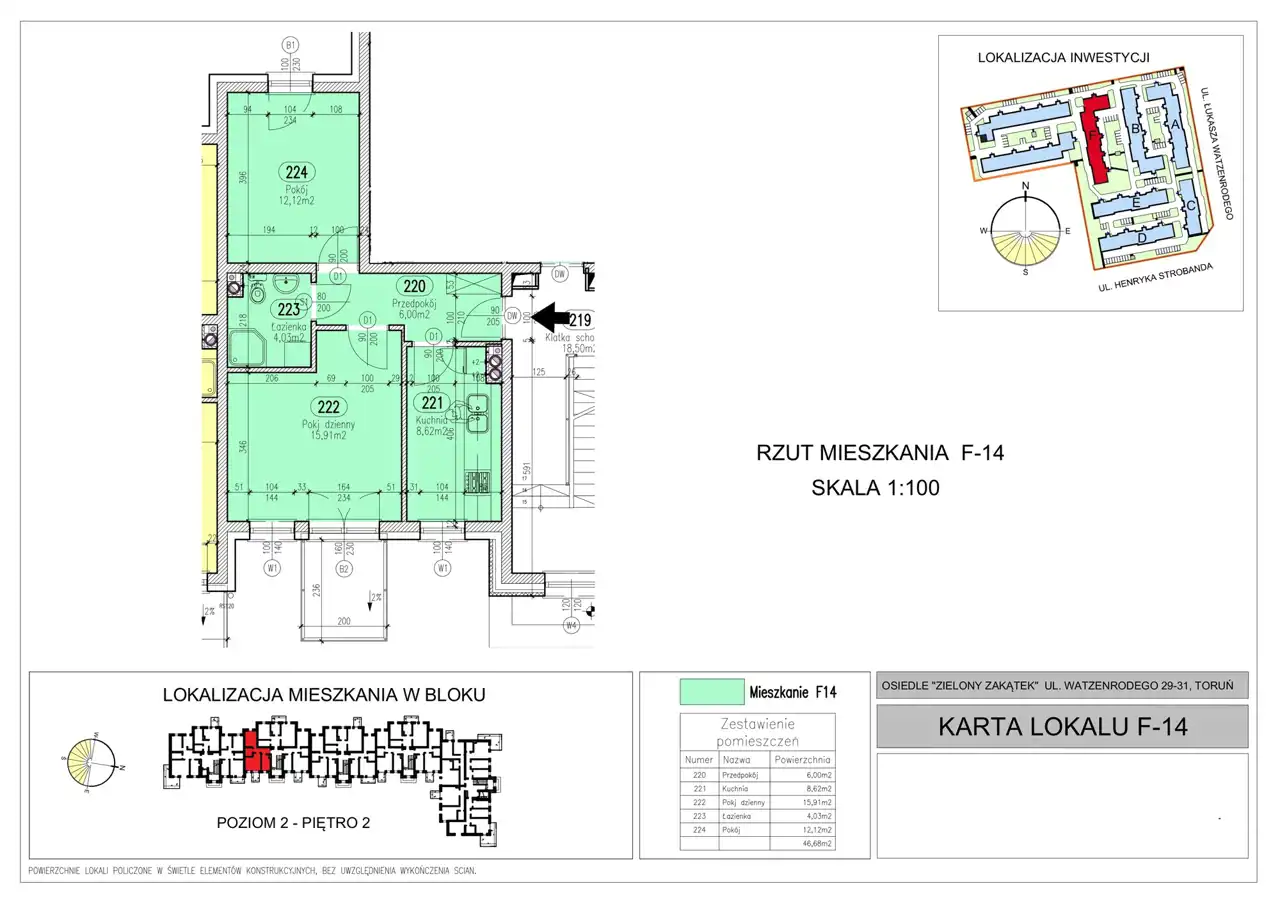 - przedpokoju - 6,22 m2