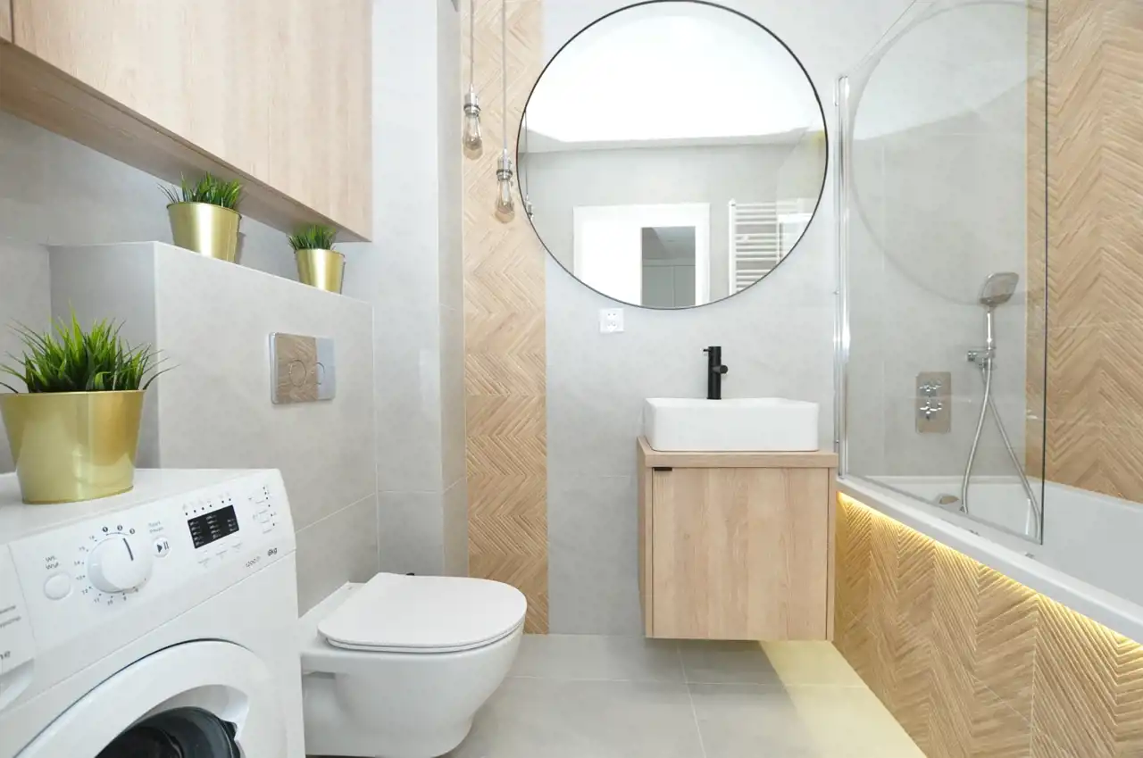 - w wyposażeniu m. in. pralka, zmywarka. duża lodówka z zamrażarką, TV