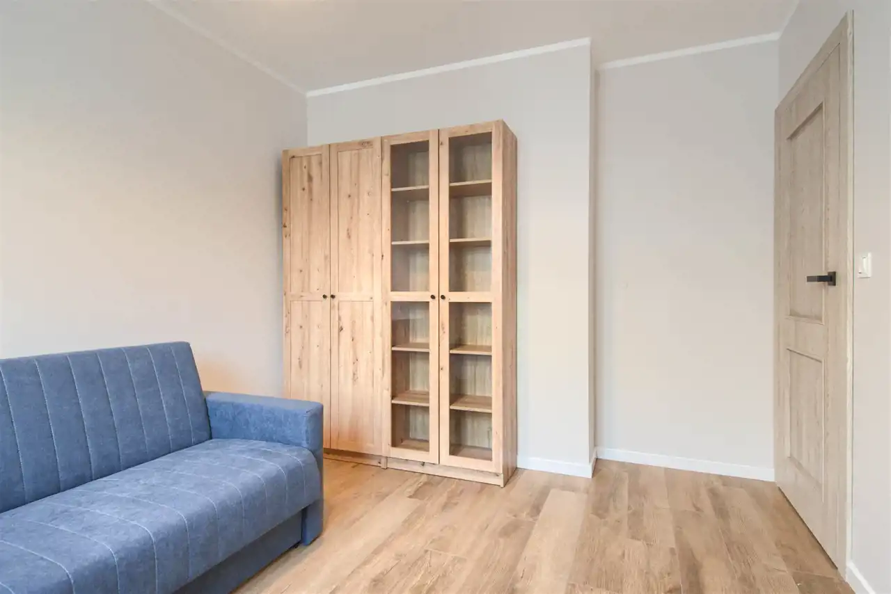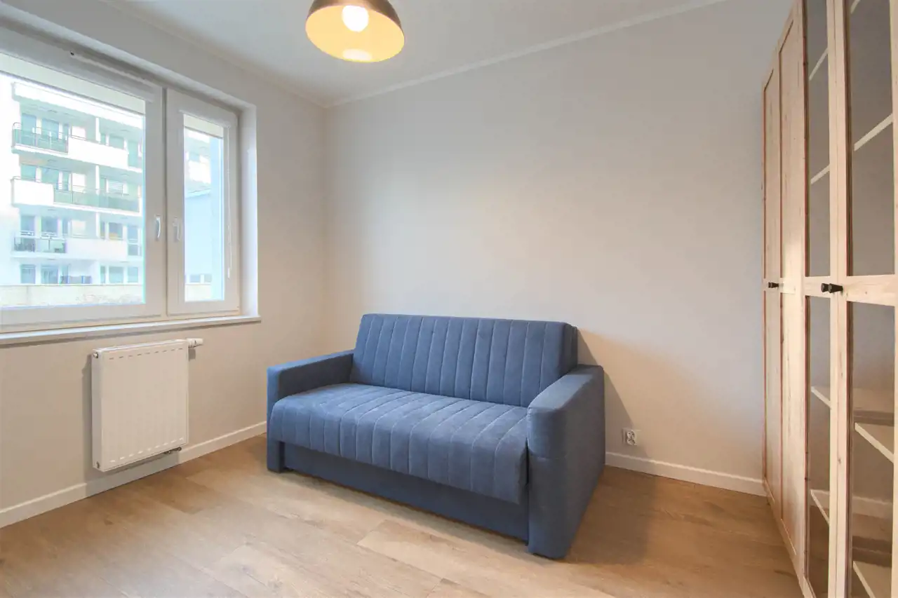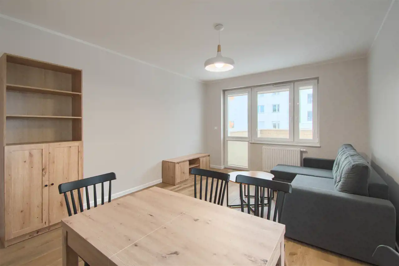 Oferujemy na wynajem nowe, umeblowane, dwupokojowe mieszkanie o powierzchni 48 m2, na wysokim parterze w budynku wielorodzinnym z cegły. Mieszkanie składa się z pokoju dziennego z dużym tarasem, sypialni, oddzielnej kuchni, łazienki i przedpokoju, jest wyposażone w niezbędne meble i sprzęty. W cenie, do dyspozycji Najemcy jest również komórka lokatorska i miejsce parkingowe w garażu podziemnym. Budynek usytuowany jest w pobliżu lasu. Polecam