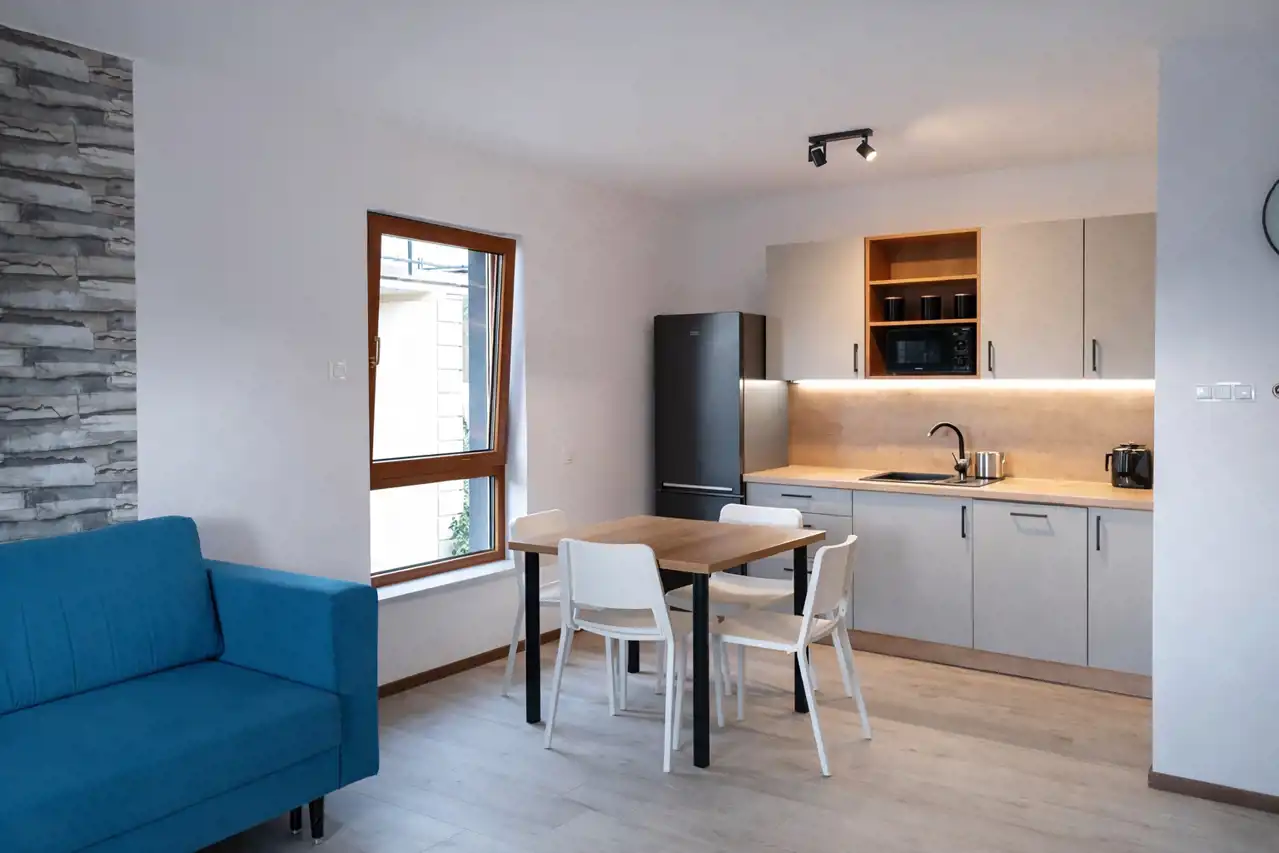 Przestronne mieszkanie, gotowe do zamieszkania, przepięknie urządzone, nie wymaga dodatkowego doinwestowania. Wyposażone jest w nowe meble i nowy sprzęt AGD (na gwarancji producenta), czyste, zadbane, na ścianach gładzie.