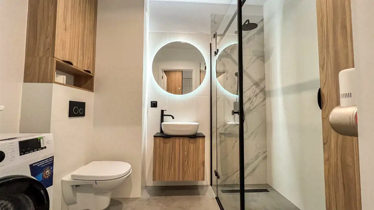 - łazienka z wc (pralka, kabina prysznicowa, odkurzacz)