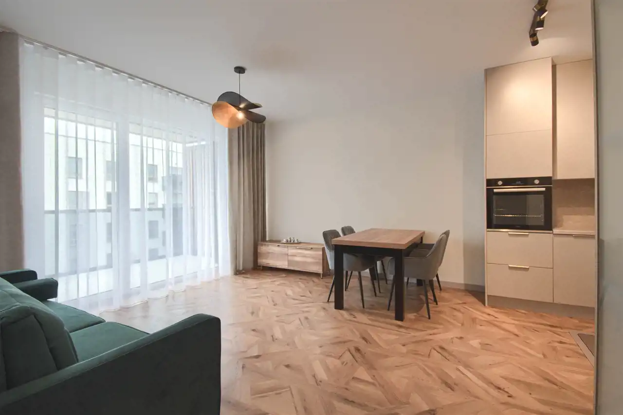 - nowoczesna zabudowa kuchenna (lodówka, piekarnik, płyta indukcyjna, zmywarka),
