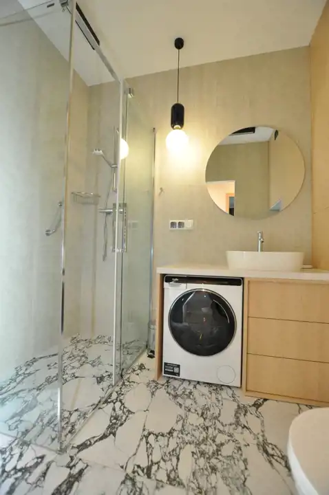- w wyposażeniu m.in. pralka, duża lodówka z zamrażarką, zmywarka, TV, odkurzacz