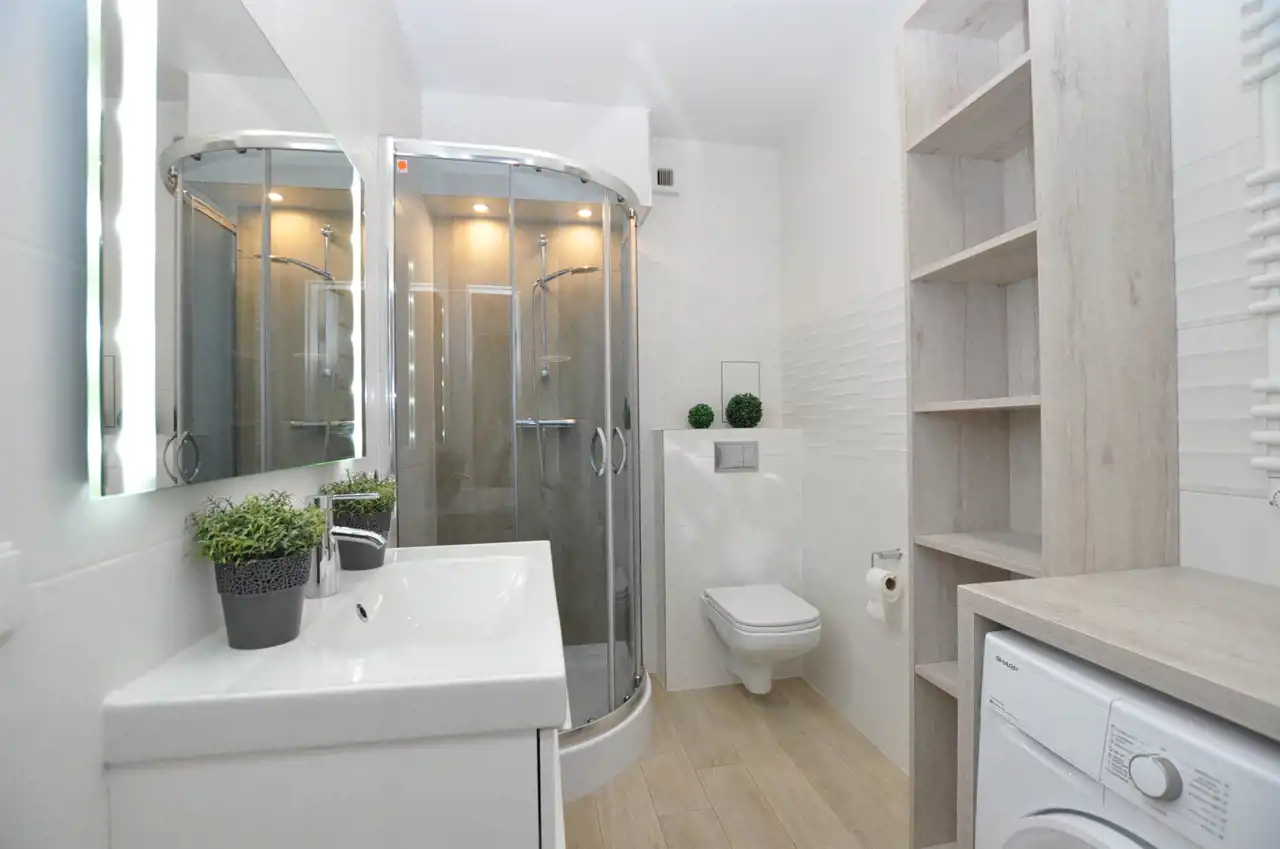 - w wyposażeniu m.in.TV, zmywarka, duża lodówka z zamrażarką, pralka