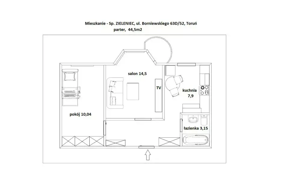 - Charakterystyka mieszkania 44.5 m2, 2 pokoje