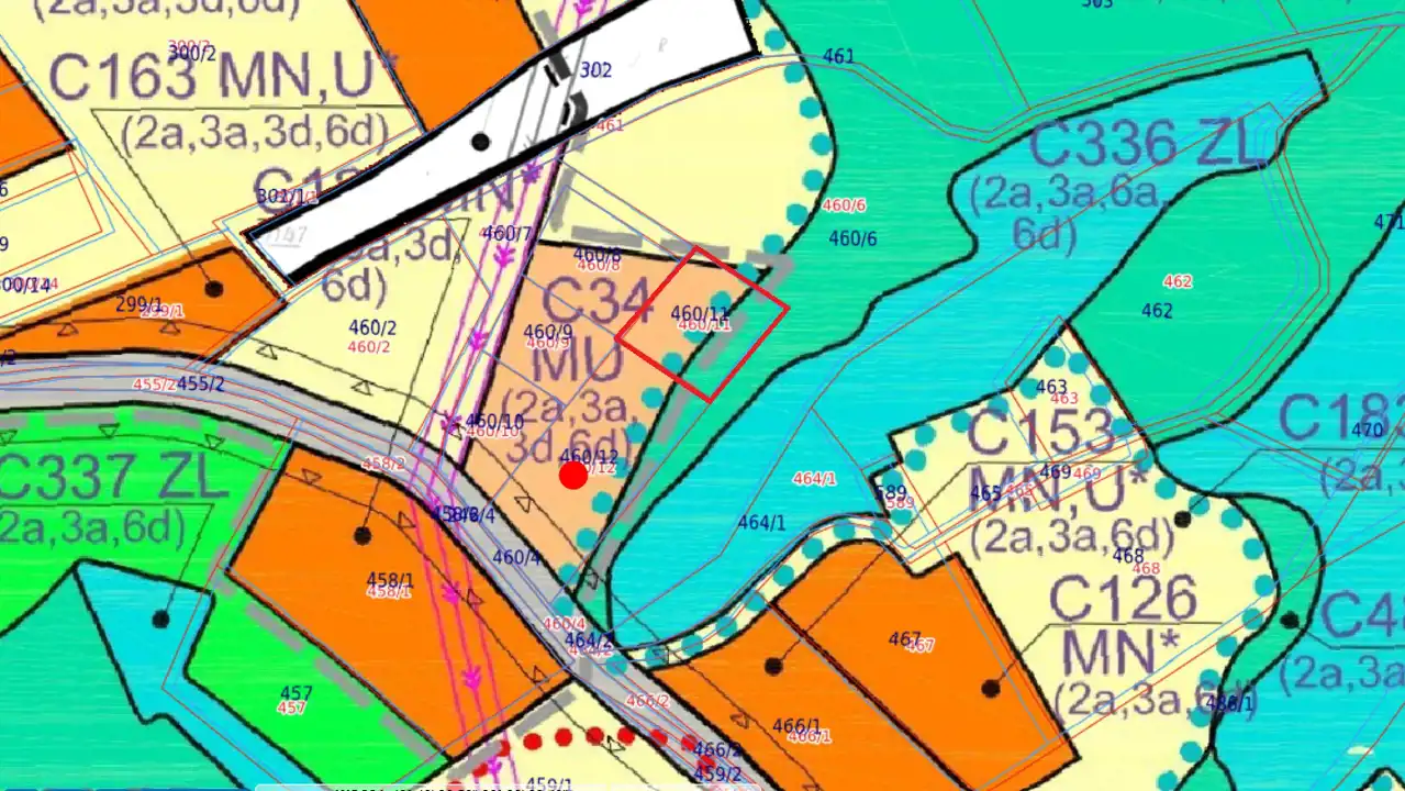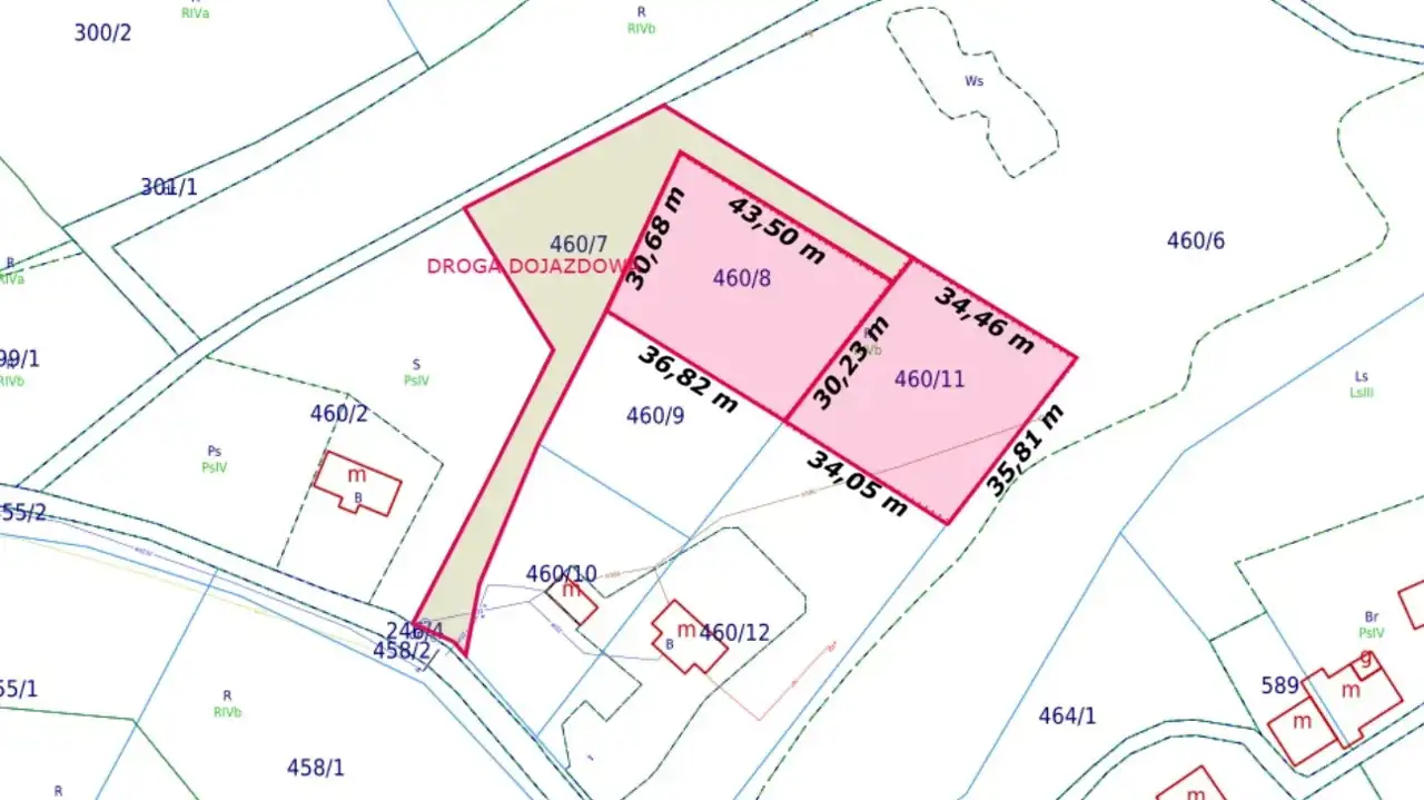 Działka objęta jest miejscowym planem zagospodarowania przestrzennego i składa się z powierzchni przeznaczonej pod zabudowę mieszkaniową jednorodzinną, zagrodową i usługową (MU - 7,68 ar) oraz terenów zielonych przeznaczonych do zalesienia (RD - 4,58 ar).