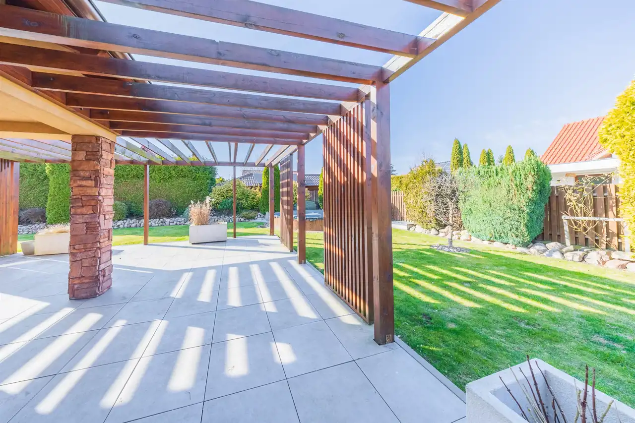 Ten przestronny, parterowy dom o powierzchni użytkowej 178,42 m² został starannie zaprojektowany, by sprostać oczekiwaniom najbardziej wymagających klientów. W bryle budynku znajduje się również wygodny garaż. Dom położony jest na w pełni zagospodarowanej działce o powierzchni 902 m², która oferuje szeroki wachlarz możliwości spędzania czasu na świeżym powietrzu.