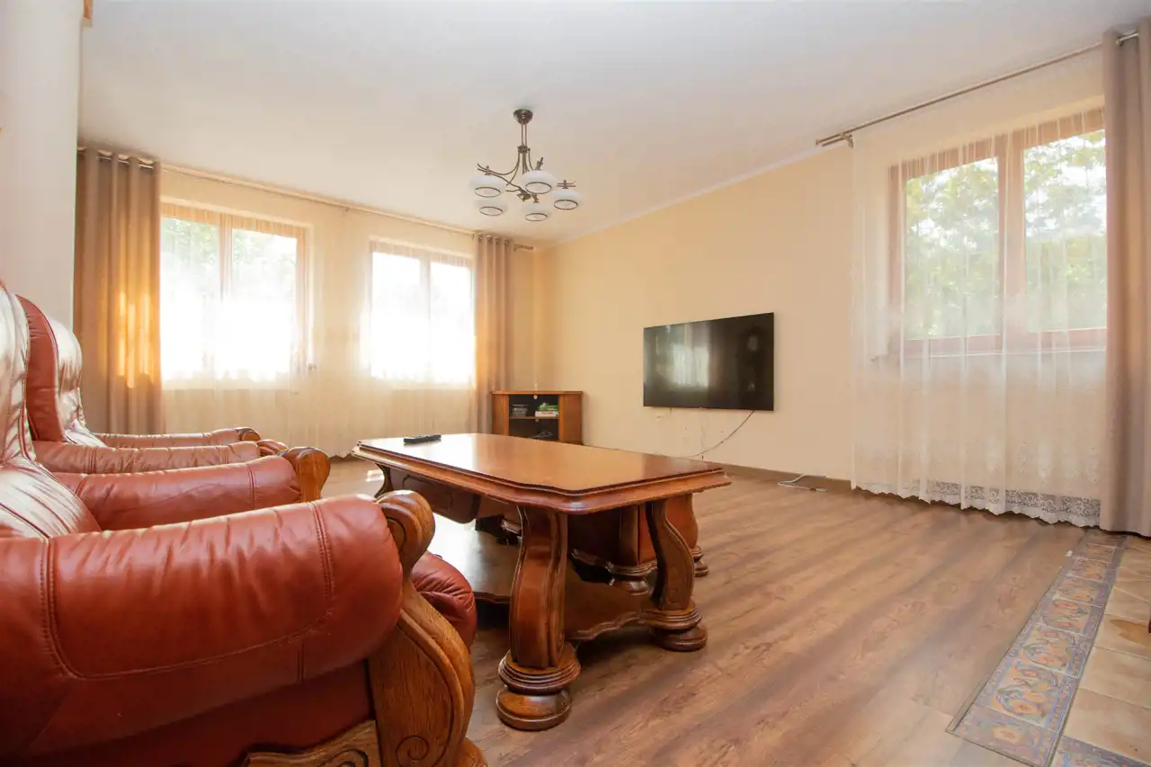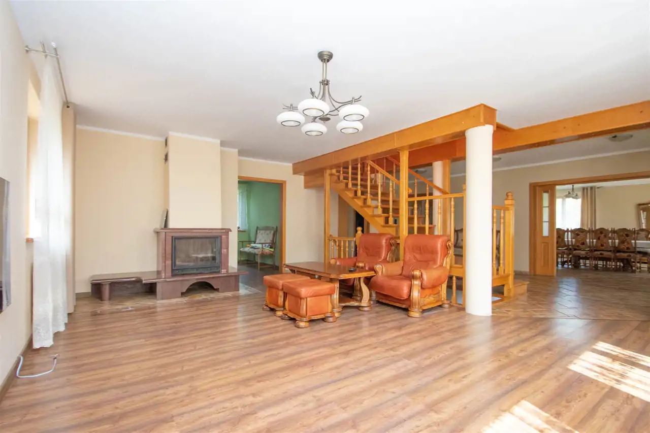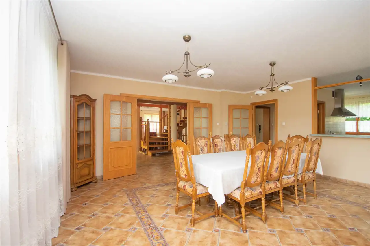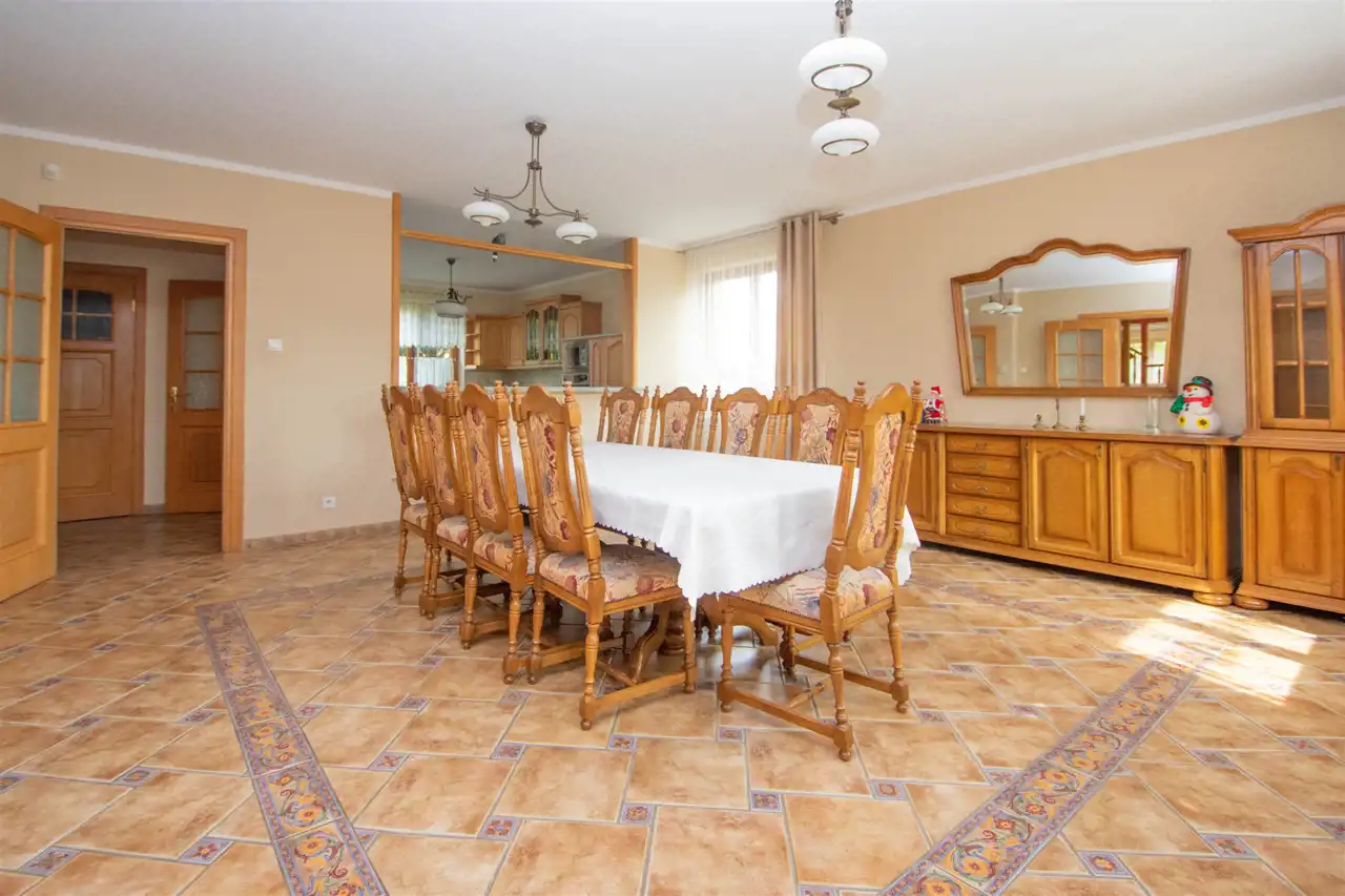 - jadalni z pięknym drewnianym stołem i krzesłami o powierzchni 32,8m2