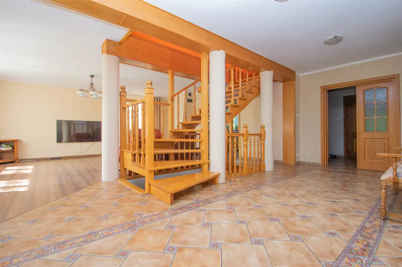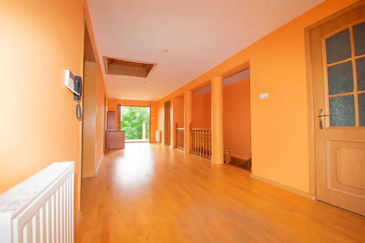 - przestronnego korytarza o powierzchni 27 m2 z którego mamy szerokie wyjścia na jeszcze dwa tarasy. Pierwszy o powierzchni 7 m2 znajdujący się bezpośrednio nad wejściem do nieruchomości. Drugi o powierzchni 18 m2 od strony ogrodu gdzie cieszyć możemy się widokiem na las, ciszą i spokojem,