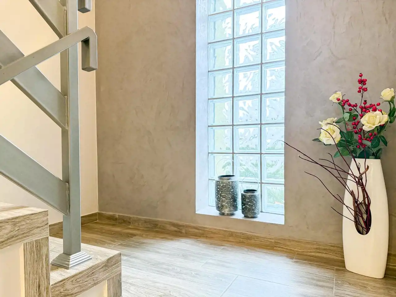 łącznie 4 pokoje, 2 łazienki (wanna + prysznic) i mnóstwo światła dzięki szklanym pustakom na klatce schodowej.