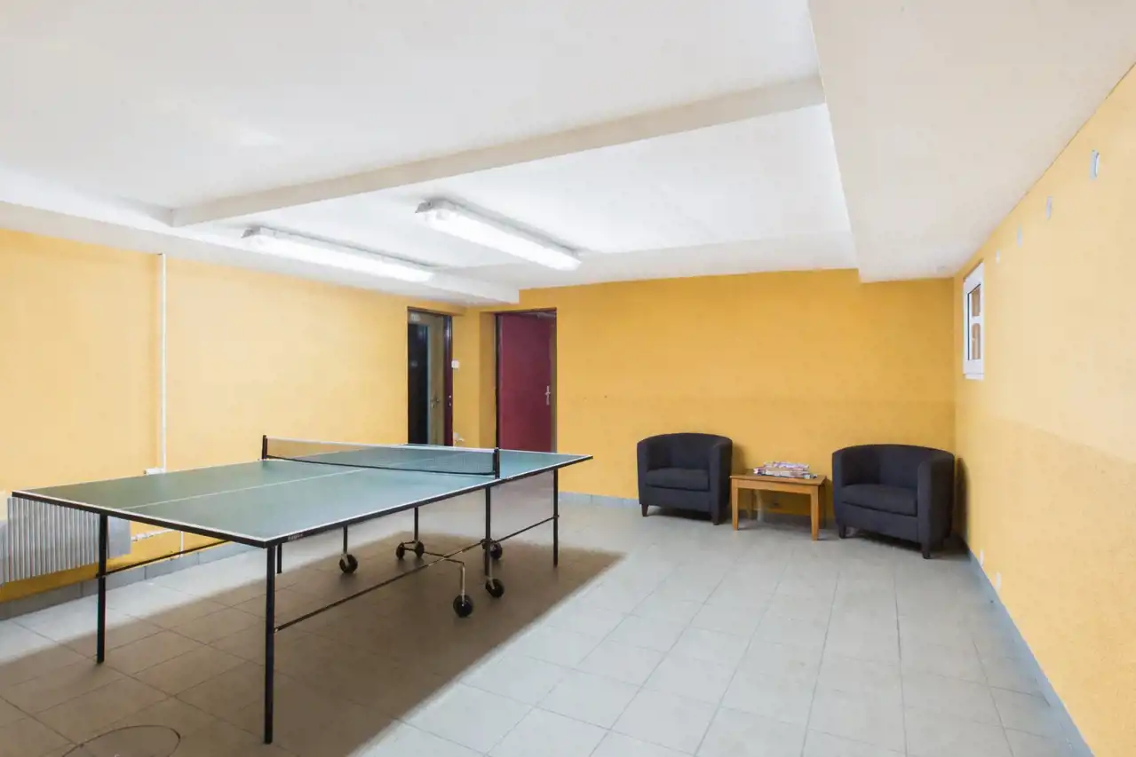 - przestrzeń rekreacyjna ze stołem do ping ponga