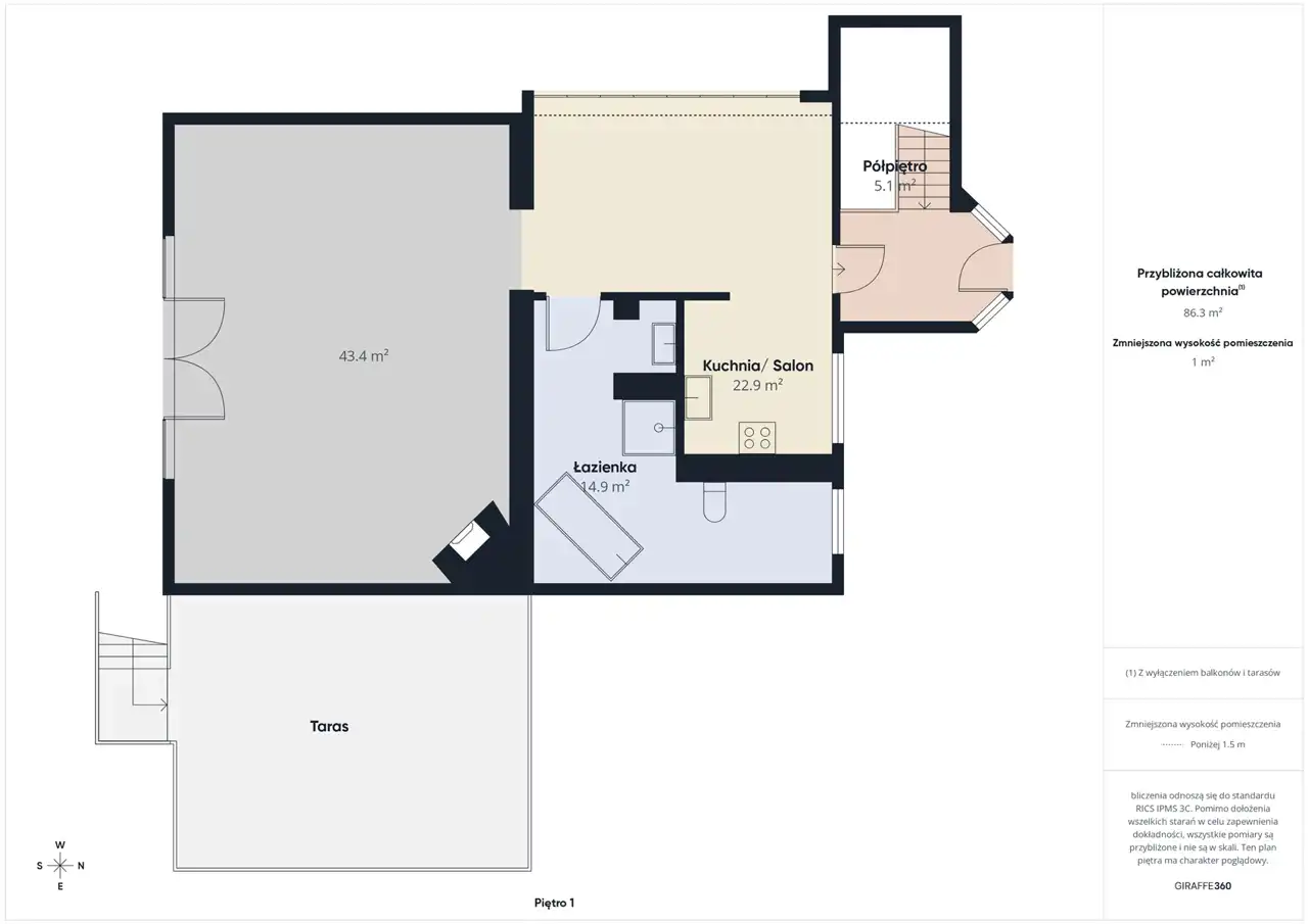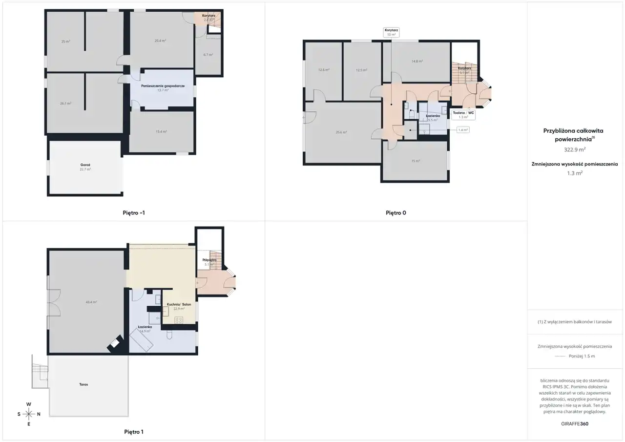 - kuchnia z jadalnią o pow. 22,9 m2,