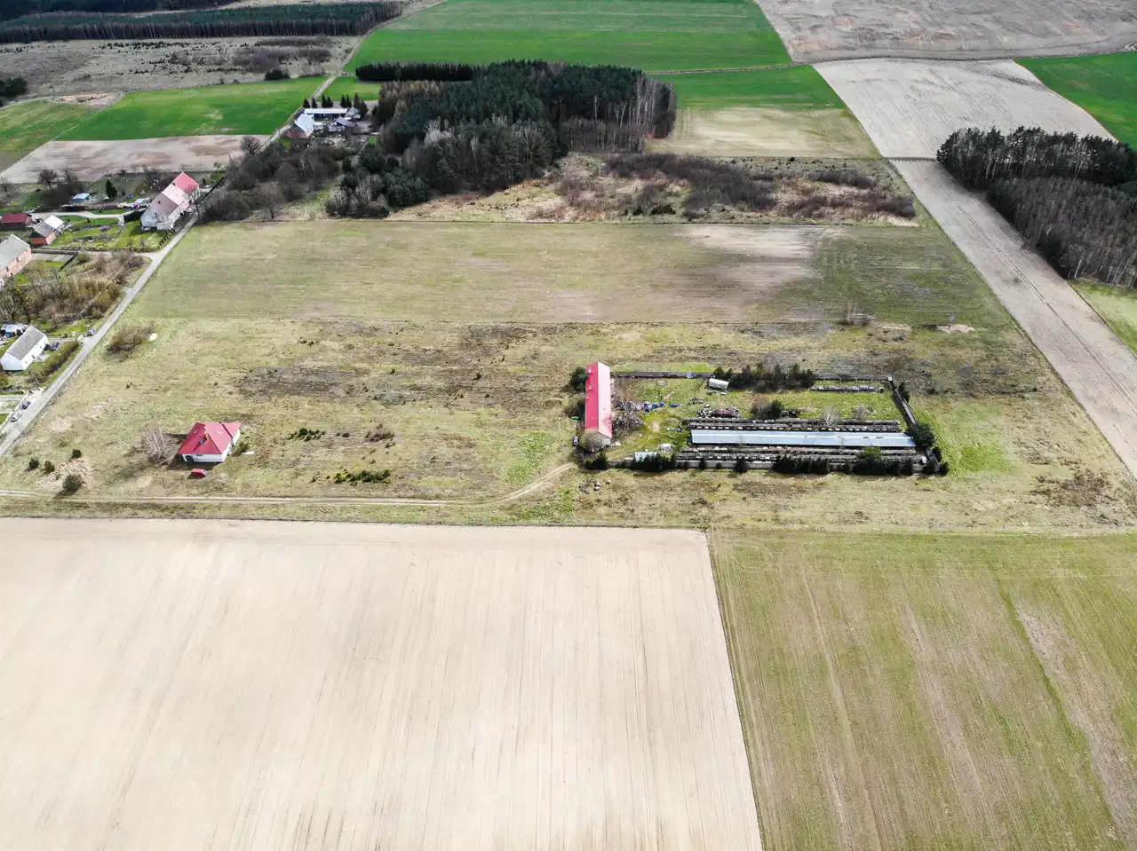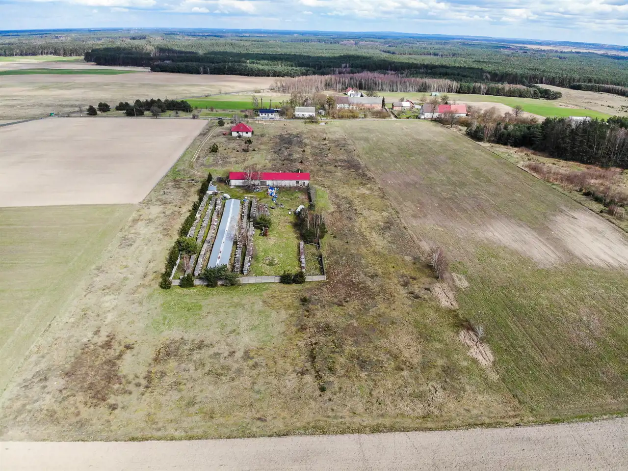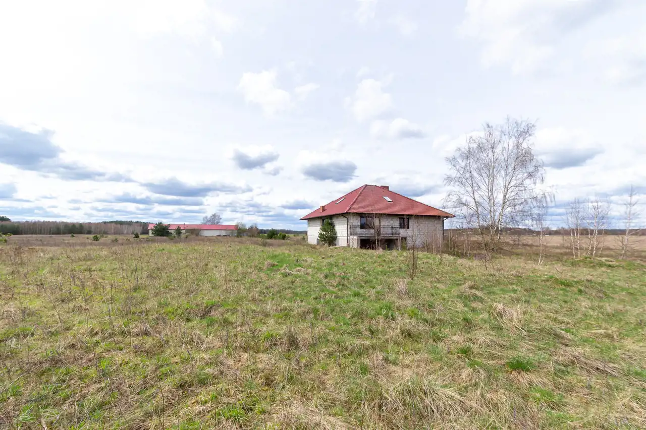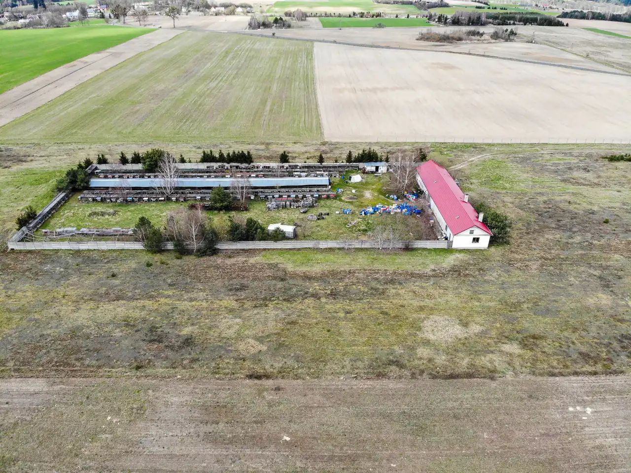 Przedmiotem oferty jest działka gruntu (własność) o powierzchni 3,92 ha zabudowana domem jednorodzinnym o powierzchni użytkowej 118,53m2 oraz budynkiem gospodarczo- magazynowym o powierzchni użytkowej 269,50m2.